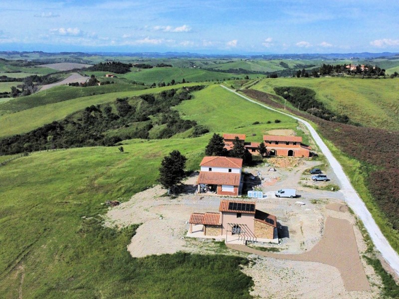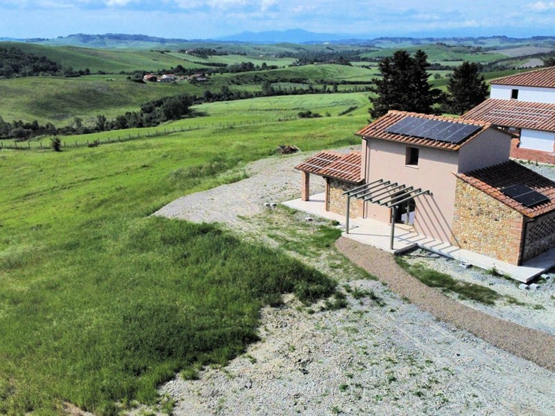 Trattiamo la vendita di abitazioni, in un piccolo borgo di campagna, ognuna con il proprio ingresso indipendente, ognuna con il proprio giardino, situate in un collina panoramica nella zona tra Volterra e Lajatico .Il complesso prevede la realizzazione di 3 ville di cui una villetta indipendente con la propria piscina, un edificio suddiviso in due abitazioni con una piscina a comune e un terzo edificio anche questo suddiviso in due unità abitative con una piscina loro servizio. Il complesso ha una vista incredibile a 360 gradi, posto sulle sommità di una collina con l'assoluta privacy ma allo stesso tempo con delle abitazioni di campagna nelle vicinanze. Si accede alla proprietà Tramite una strada sterrata di circa 2 km che permette poi l'accesso alla strada provinciale per Volterra e Lajatico, raggiungibili in soli 10 minuti di auto per avere i primi servizi di prima necessità Le ville sono autorizzate con progetto di recupero di volumetrie. La " Villa A" è una casa indipendente disposta su due piani, con ampio giardino esclusivo, posti auto e la piscina privata, appena venduta Le due unità Abitative nella Bifamiliare sono composte da due unità con Ingresso indipendente e giardino esclusivo e la piscina Panoramica.