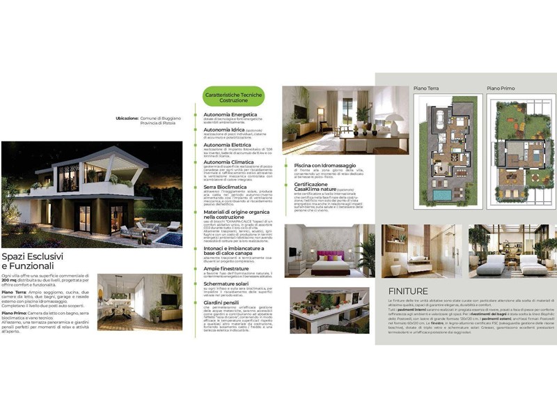 Le ville infatti sono dotate di pannelli fotovoltaici, sistemi di ventilazione meccanica controllata, strutture antisismiche e tecnologie avanzate per il risparmio energetico, per unabitazione davvero allavanguardia.