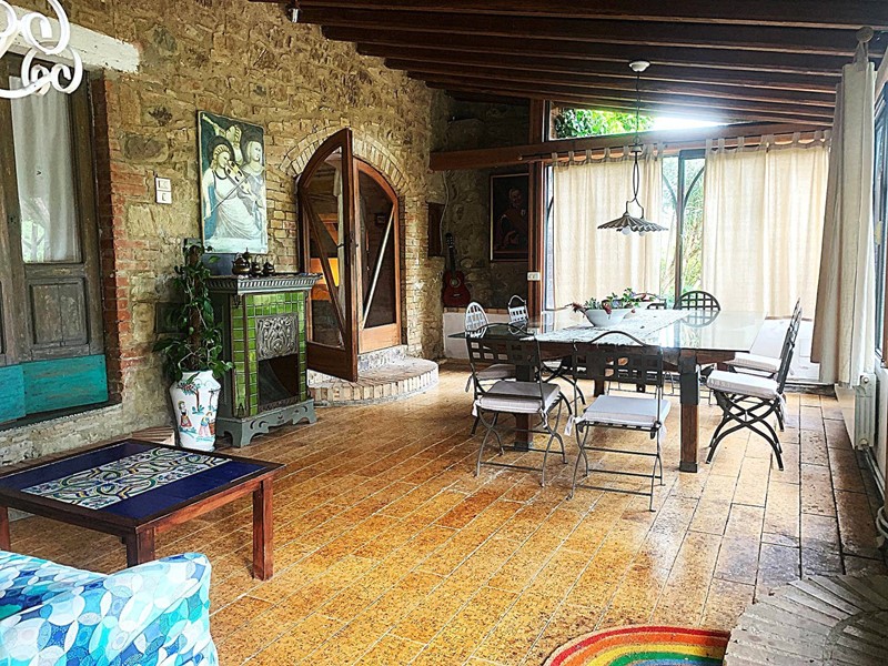 Sala da pranzo Giardino dInverno con vetrate e tavolo artigianale