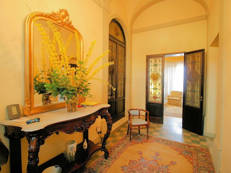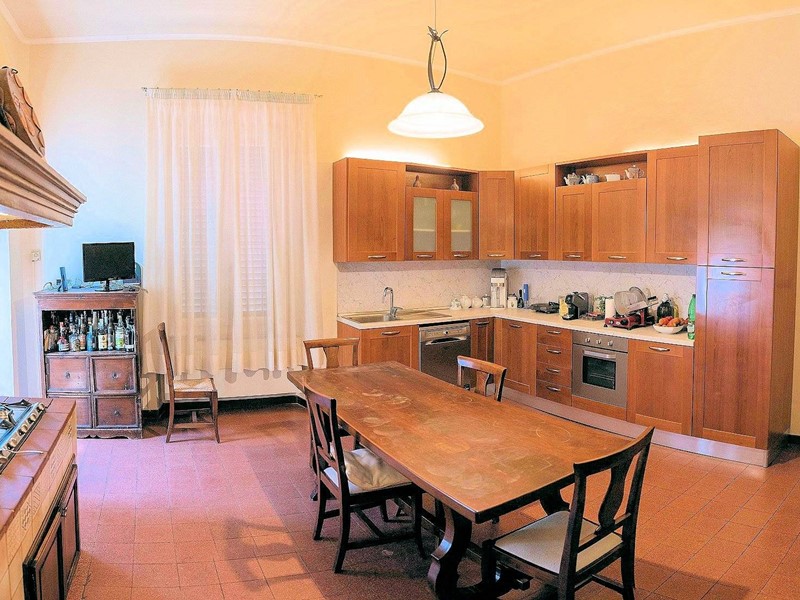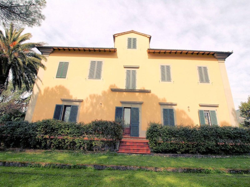 Bellissima villa dal tono e i connotati molto signorili ben mantenuta dagli attuali Proprietari che non gli fanno mancare di certo quello che necessita per il buon mantenimento di un oggetto così importante.Si distingue da altre soluzioni di questo tenore perché è sita in un punto strategico da tutti i punti di vista, noi riteniamo che il più importante in questo momento storico sia quello di essere nel centro della frazione di S.Lucia nel comune di Uzzano in un contesto ben accessibile e non isolato.Una delle caratteristiche peculiari che le dona un tocco di unicità è quello di non avere confinanti privati ma solo spazi e strade di proprietà dellamministrazione comunale di Uzzano.il Fabbricato è immerso in un bel giardino di circa 3.300 mq ben piantumato e curato.Discosti dalla villa ci sono due fabbricati di cui uno ad uso garage di circa 30 mq e laltro ad uso dependance di circa 80.La proprietà ha tre ingressi di cui due carrabili e laltro pedonale.Il fabbricato padronale si presenta in tono maestoso ma sobrio ed è caratterizzato al centro da una torre e ai lati da due corpi simmetrici che manifestano chiaramente lorigine del periodo costruttivo e la somiglianza allo stile liberty.Labitazione principale ha una superficie di circa 500 mq ed è disposta su tre livelli fuori terra, il piano terra rialzato a zona giorno, il piano primo come zona notte e il piano soffiitte con la parte centrale più alta (torrette) da utilizzare in vari modi secondo le esigenze e il gusto del futuro acquirente.Il piano terra si compone di un bellissimo ingresso con un portone di legno e allinterno di una porta in ferro con i vetri che separa la zona adibita a guardaroba con labitazione, salotto con camino, studio adiacente con antibagno e bagno, ampio e luminoso salone con accesso diretto alla terrazza sul giardino, salottino di cornice e congiunzione con la cucina in stile Toscano di superficie importante con accesso diretto allesterno verso il barbecue in muratura, il garage e la dependance, dispensa, bagno, ripostiglio sotto scala, altro studio/biblioteca;Al piano primo, secondo le esigenze dei Proprietari, vengono utilizzate solo due camere da letto ognuna con bagno ad uso esclusivo e sono state lasciate da ristrutturare altri cinque locali dove si potrebbe realizzare un appartamento o altre stanze per vari usi.La proprietà è in ottime condizioni manutentive e può essere sfruttata anche per lutilizzo indipendente di più nuclei della stessa Famiglia, comodo anche lappartamento nel giardino da utilizzare per ospitare Amici o Parenti.Date le sue dimensioni e la sua centralità tra le città di Lucca e Pistoia potrebbe essere utilizzata anche come uso promiscuo residenziale/turistico ricettivo.La proprietà è dotata di sofisticato impianto di allarme interno ed esterno coadiuvato da impianto di videosorveglianza attivo sulle 24 ore.