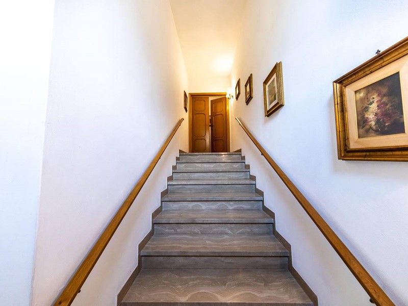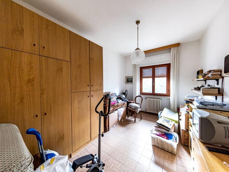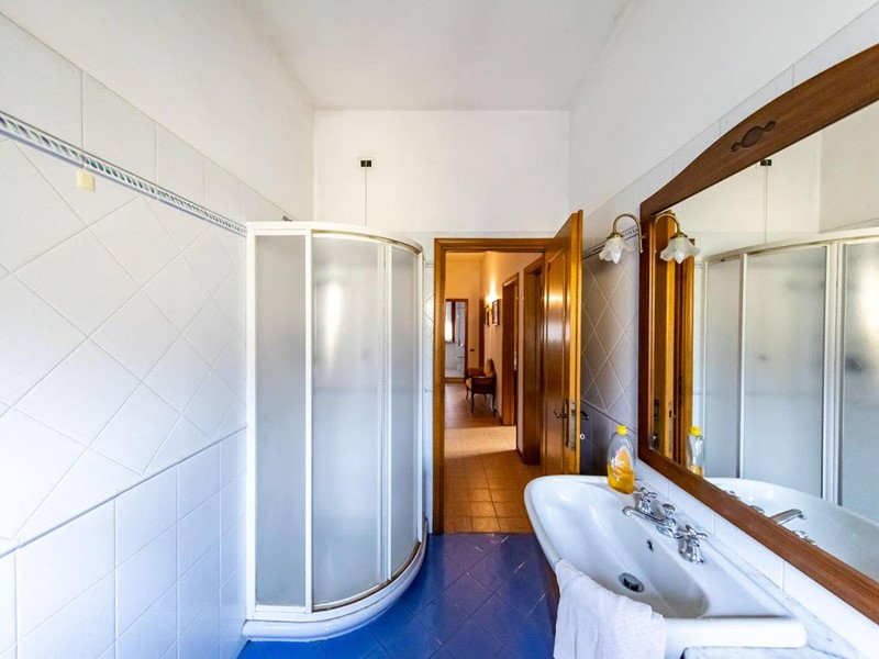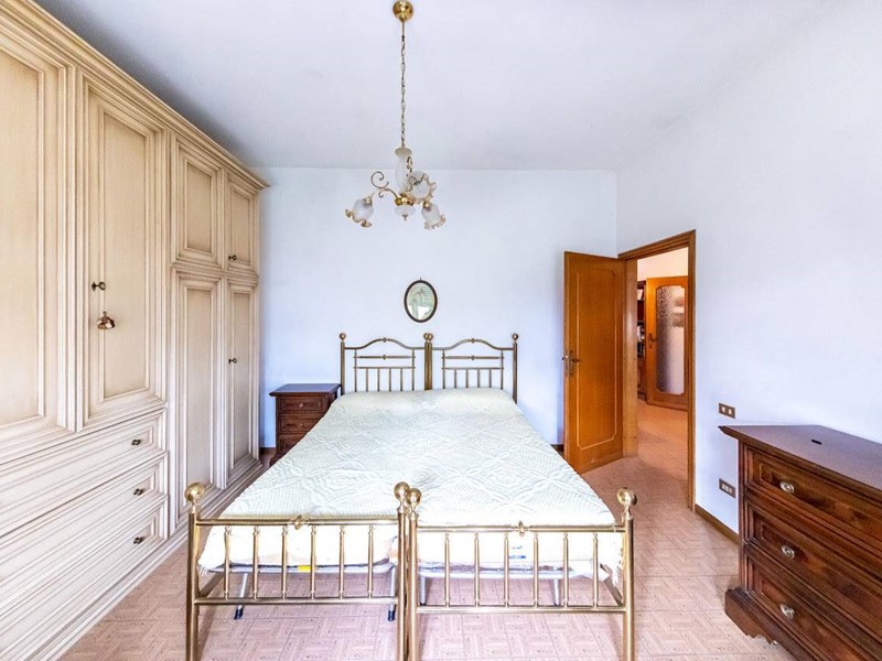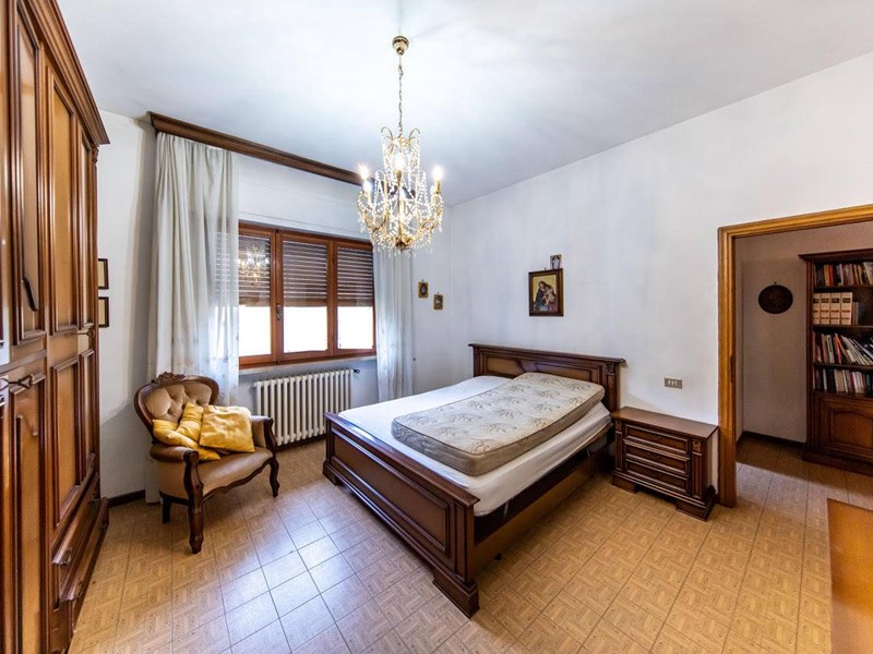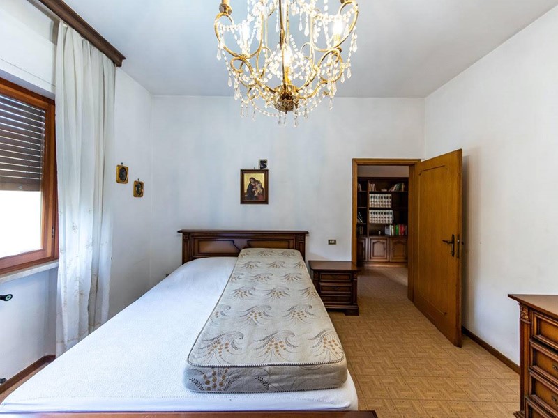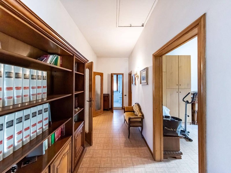 In ottimo contesto centrale residenziale, appartamento che occupa l'intero piano primo di villa bifamiliare costituita da sole due unità abitative, con accesso indipendente, composto da ampio vano di ingresso al piano terra, disimpegno, ampio e luminoso soggiorno dotato di camino, con porta-finestra in affaccio su balcone, sala da pranzo con porta-finestra in affaccio su altro balcone attrezzato con zona lavanderia, cucinotto, disimpegno notte, due camere matrimoniali, ampia camera singola, bagno di servizio ed altro bagno finestrato con doccia al piano primo. Corredato da giardino al piano terra e posto auto scoperto con ingresso da cancello carrabile nella proprietà esclusiva. Infissi in legno, riscaldamento autonomo.