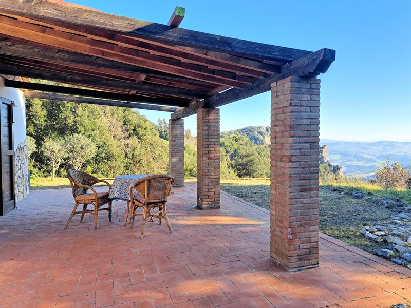 Nella campagna di Pomarance, ai margini di un piccolo borgo, arroccato su una collina, in fantastica posizione panoramica, vendesi villa indipendente con 1,7 ha di terreno.