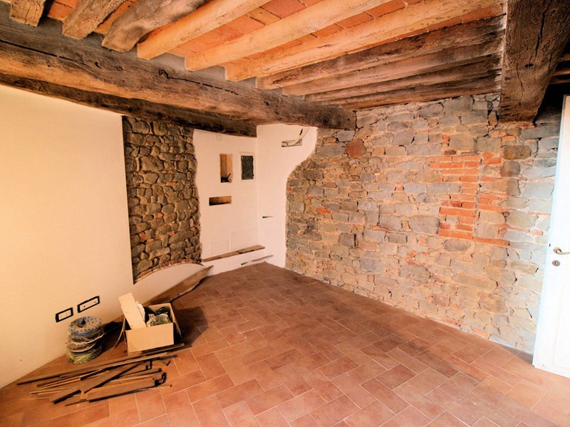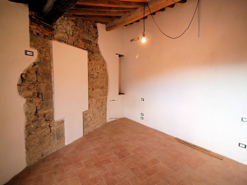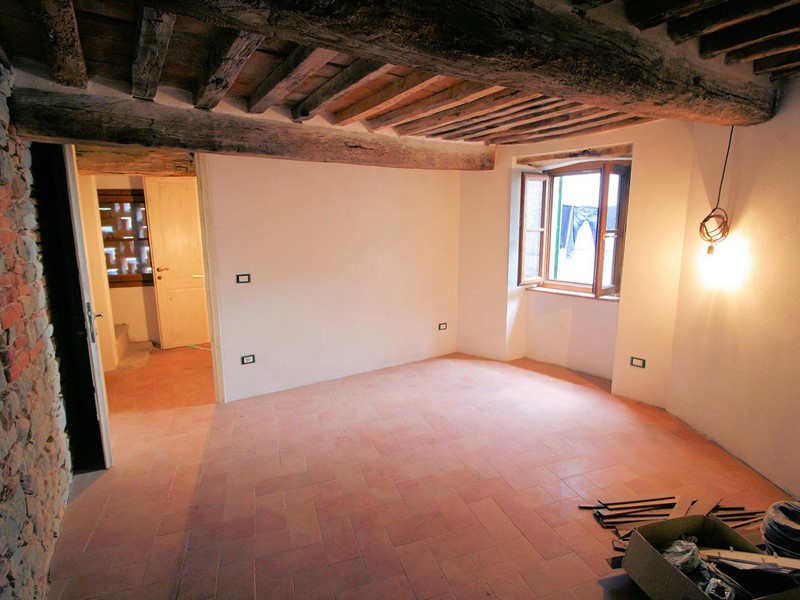 Bel terratetto indipendente di circa 135 mq, libero su tre lati, completamente ristrutturato sito nel centro storico di Massa paese in comune di Massa e Cozzile, nella zona più alta della frazione, in uno dei punti più comodi per parcheggiare dato che a pochi metri dalla casa ci sono i parcheggi pubblici.Il fabbricato è costruito in pietra ma per regolamento comunale allesterno è stato intonacato al rustico, mentre allinterno sono presenti molti muri in sasso e mattoni a faccia vista, i solai sono in travi e travicelli in legno e mezzane.Limmobile è disposto su tre livelli fuori terra, molto interessante la possibilità di poter contare su due accessi al piano terra che rendono possibile la realizzazione di un bilocale con bagno indipendente dal piano primo e secondo.Salendo una rampa di scale si arriva al piano primo dove è stata predisposta la sistemazione della zona giorno con unampia cucina/zona pranzo con camino, sala, wc; al piano secondo trovano spazio due ampie camere di cui una con la possibilità di realizzare un piccolo soppalco in legno dove sistemare un altro letto o una cabina armadi, bagno.Il terratetto è stato ristrutturato dal proprietario con la massima cura dato che doveva essere la sua residenza poi per motivi familiari e lavoro si è trasferito in altra zona e quindi lha messo in vendita.Sono sufficienti pochi lavori di finitura per renderlo abitabile.Labitazione da alcune stanze gode di un bello scorcio di vista panoramica sulla pianura.