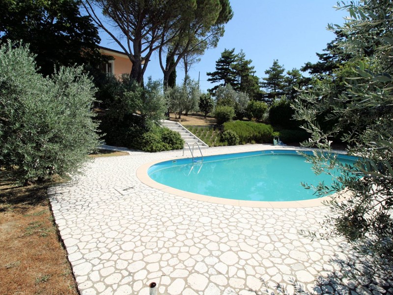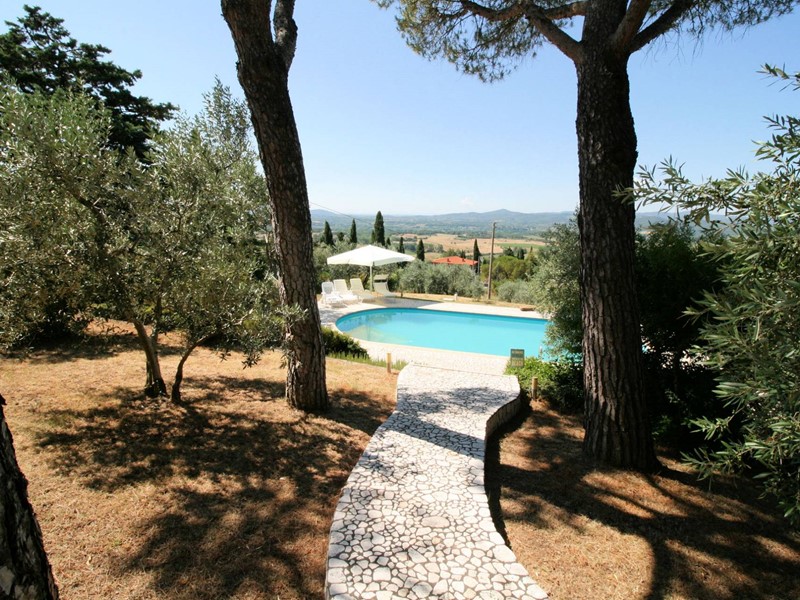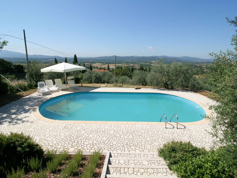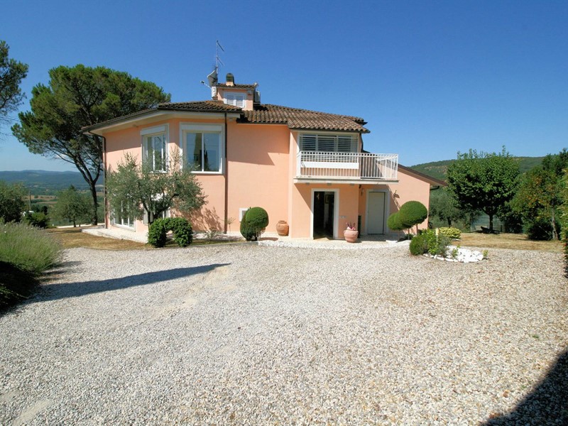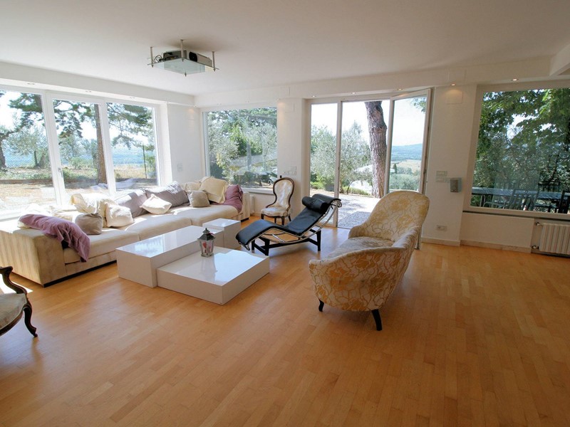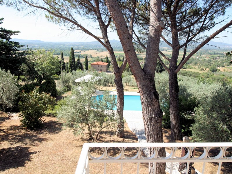 Luminosissima villa unifamiliare di circa 230 mq posta in posizione incantevole, con vista mozzafiato, sui dolci declivi della Toscana in comune di Capolona vicino ad Arezzo, immersa fra gli olivi, dotata di piscina panoramica e di alcuni angoli relax, anch'essi dotati di una splendida vista. Il concetto di questa villa, anche dall'interno, è stato quello di mantenere il contatto con la natura e di assaporare l'avvicendarsi delle stagioni. Dall'ingresso principale si accede ad un salone triplo, bar sala pranzo e soggiorno con bagno per ospiti, di circa 75 metri quadrati, tutto circondato da grandi finestre e finestroni tutti serviti da tende oscuranti verticali con comando elettrico. Indescrivibile la luce di questo grande spazio. Salendo tre gradini si accede alla cucina abitabile, il cui piano di lavoro è anch' esso panoramico, attigua alla cucina la lavanderia/stireria ed una terza stanza attrezzata a rimessa, questa parte di fabbricato ha un ingresso indipendente dallesterno. Dall'ingresso principale, tramite una scala in travertino, si accede al piano superiore dove trovano spazio una biblioteca, la camera padronale con vista panoramica, cabina-armadio, bagno e doccia ad uso esclusivo anch'essa panoramica, altre due camere ciascuna con bagno ad uso esclusivo ed un ripostiglio attrezzato, questo livello è caratterizzato da pavimenti rivestiti con parquet di ottima qualità.La villa si trova ad un'altezza di circa 300 metri sul livello del mare, sulle pendici del Parco Naturale del Pratomagno.E circondata da circa 3.300 mq di terreno completamente recintato e da numerosi sentieri del C.A.I. per cui è possibile, partendo da casa, fare delle meravigliose camminate nei boschi.Dallabitazione, così come dalla piscina e dal terreno circostante è possibile ammirare Arezzo, la ValdiChiana, il Monte Amiata, il Monte Cetone, il Valdarno.La proprietà è raggiungibile da Arezzo tramite autobus della linea urbana.Infine il Comune di Capolona ha dato un permesso di costruire che non è stato completamente utilizzato, sono rimasti circa 200 metri quadrati da realizzare sia in posizione attigua alla casa sia indipendente da essa.Questa proprietà è mantenuta in ottime condizioni manutentive dagli attuali proprietari e viene venduta solo per motivi familiari.SI PREGA DI ASTENERSI CURIOSI E PERDITEMPO.