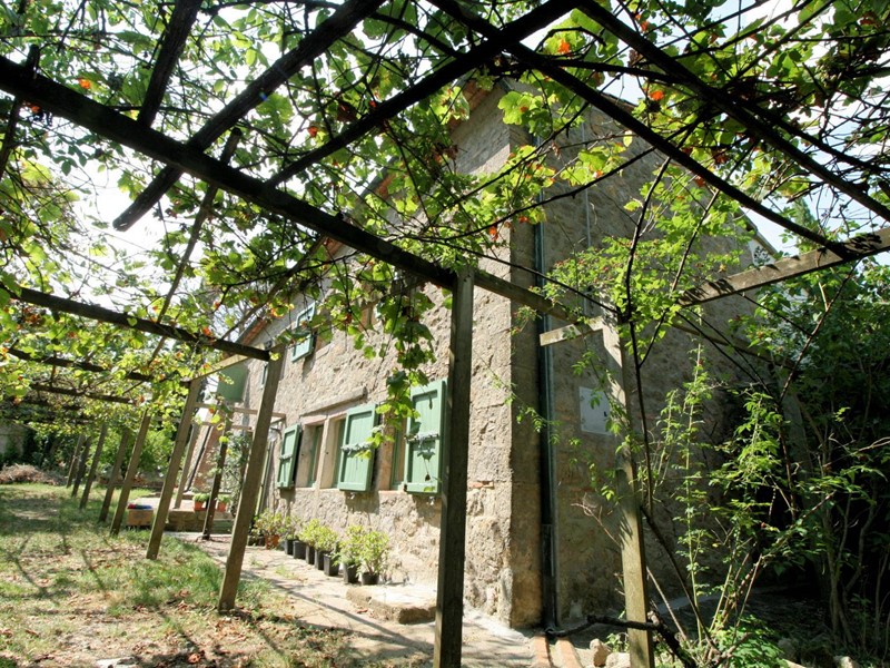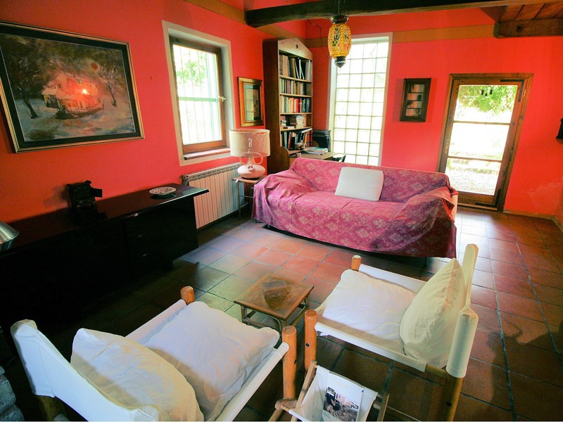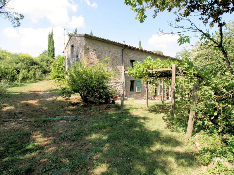 All'esterno troviamo un giardino/frutteto di circa 2000 mq (con ciliegi, susini, cachi, peri, meli, pergolato con uva), un pozzo, 25.000 mq di terreno con piante di nocciolo