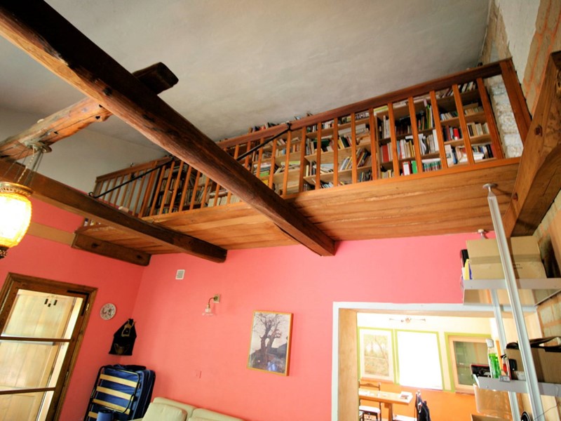 Al piano primo trovano spazio un soppalco/libreria in legno, due camere, di cui una con cabina armadio, bagno completo di vasca, piccolo locale per lavatrice e ripostiglio.