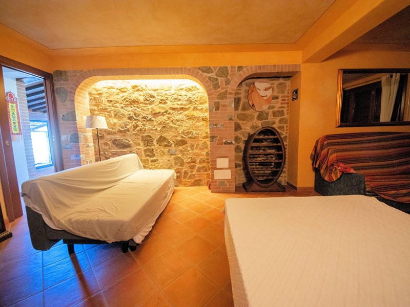 Attualmente la casa è composta da 3 camere da letto e 1 bagno, con cucina, sala da pranzo e soggiorno. L'Area Esterna è molto bella con una sala con pareti in vetro dove c'è una vasca idromassaggio affacciata sulla vallata, un'area con forno per la pizza, barbecue e cucina esterna molto utilizzata dai turisti durante la bella stagione, che si gustano i pasti all'aria aperta con una vista mozzafiato sulle colline e sulla vallata.