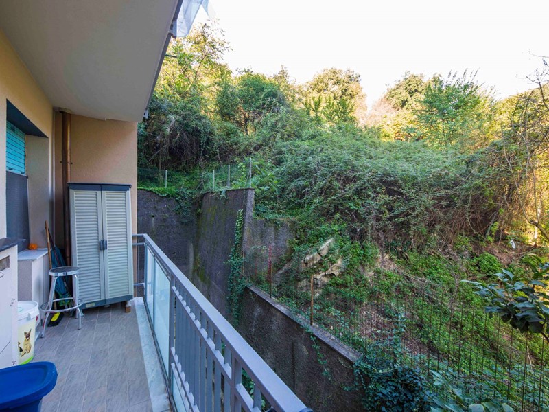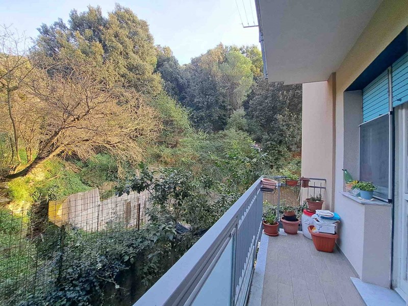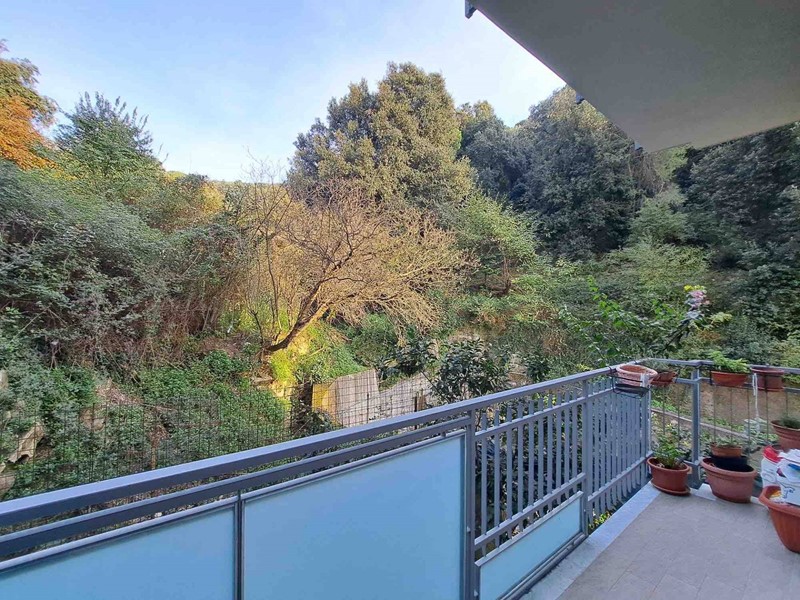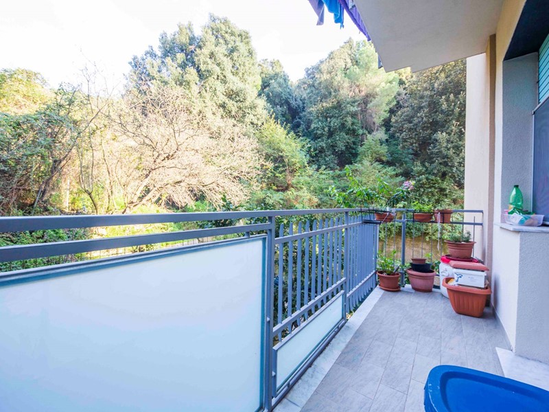Dalla cucina e da una stanza si accede al primo balcone che espone sulla via e con vista alberi che costeggiano la parte della via. Il secondo balconcino espone sul retro della casa totalmente nel verde.
