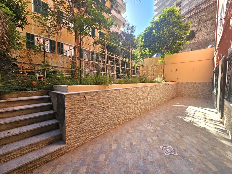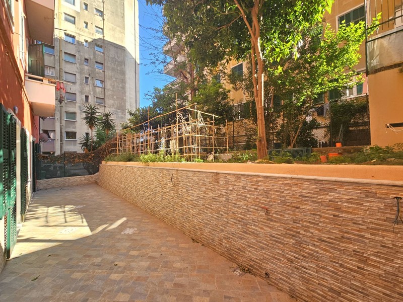 GENOVA PRINCIPE MIRAMARE appartamento con ampio terrazzo-giardino in vendita nalla parte iniziale di via Pagano Doria di vani 6. Edificio con parti comuni ordinate, interni da riordinare composti da ingresso, soggiorno, cucina, due camere, bagno, ripostiglio e grande terrazzo - giardino. Si accede allo spazio esterno direttamente dalla cucina e da una delle camere. Pur essendo un piano basso lappartamento e sufficientemente luminoso. Da vedere!