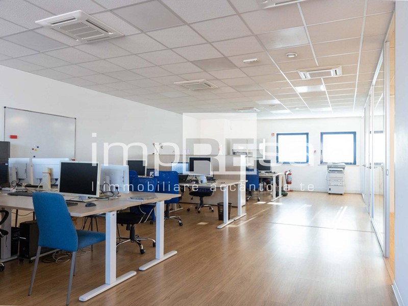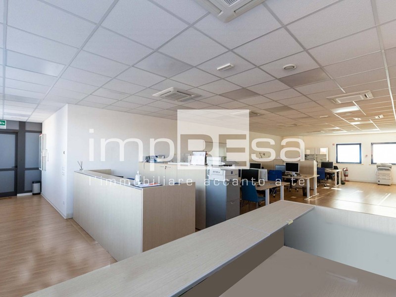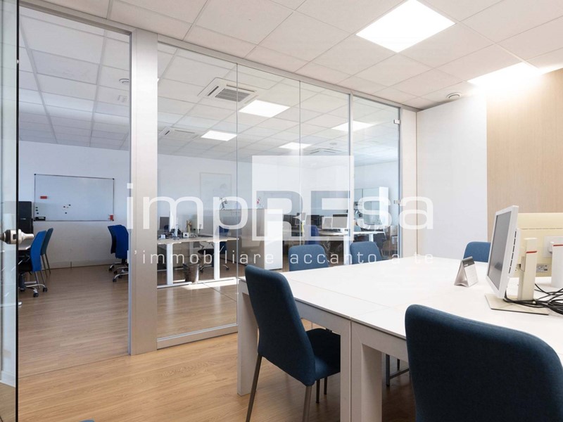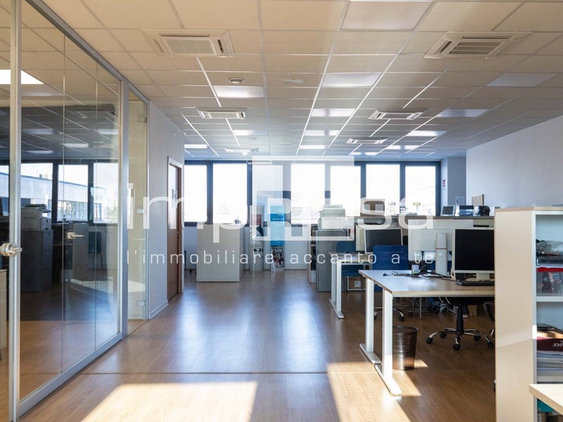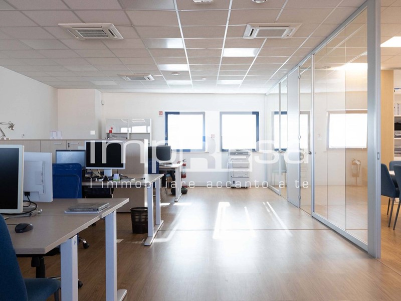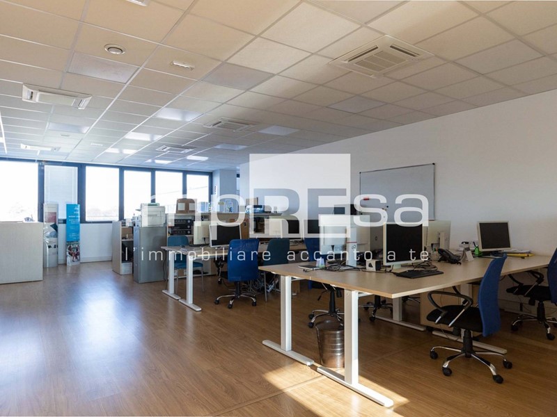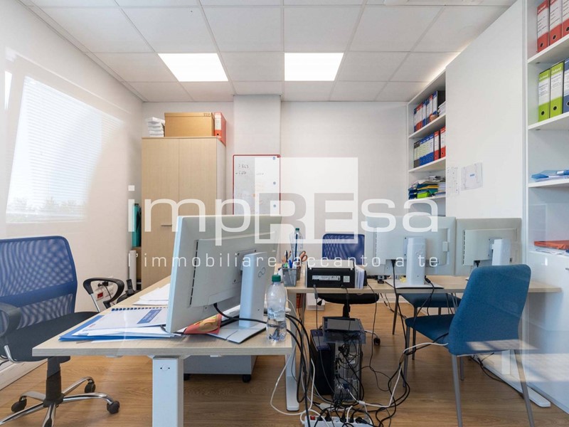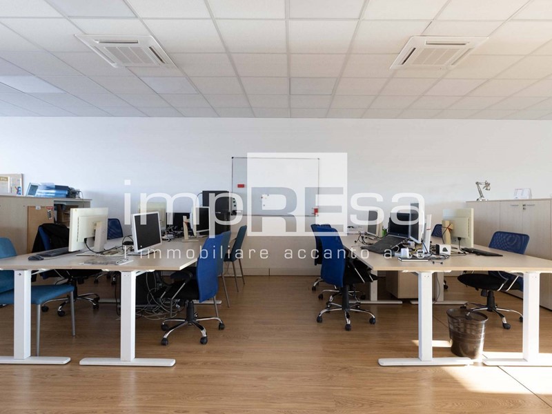 Ubicato al secondo ed ultimo piano di un complesso commerciale del 2001 composto da più uffici e servito da ascensore senza barriere architettoniche; questo immobile si sviluppa in 155mq open space con magazzino e 2 bagni. Attualmente è stata ricavata una sala riunioni ed un ufficio dell'amministrazione con una parete di vetro che li divide dall'open space.