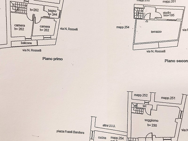 Al piano terra ingresso su ampia zona giorno, cucina abitabile e bagnetto finestrato, al primo piano due camere di cui una con balcone, bagno finestrato e ripostiglio, salendo al terzo piano troviamo piccolo disimpegno con una cameretta e con accesso alla terrazza. Riscaldamento autonomo e impianto di climatizzazione. Completa la proprietà una doppia cantina con bagno. Nessuna spesa condominiale.