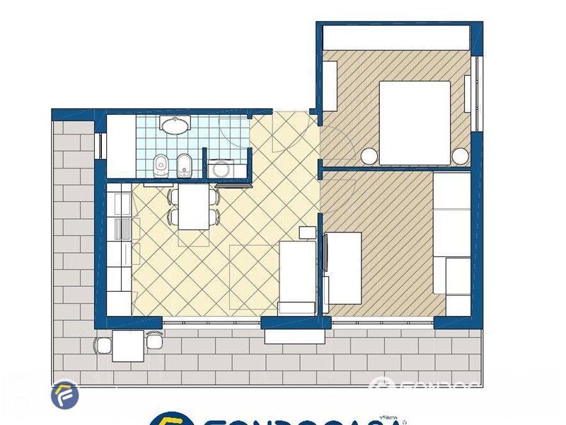 La suddivisione degli spazi interni è perfetta, caratterizzata da ingresso, soggiorno con cucina a vista, due ampie camere da letto, bagno con doccia e finestra.