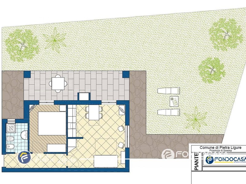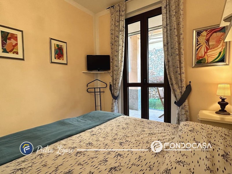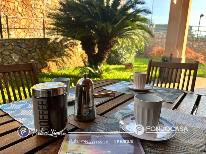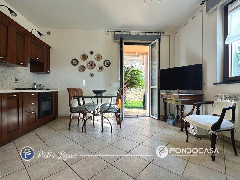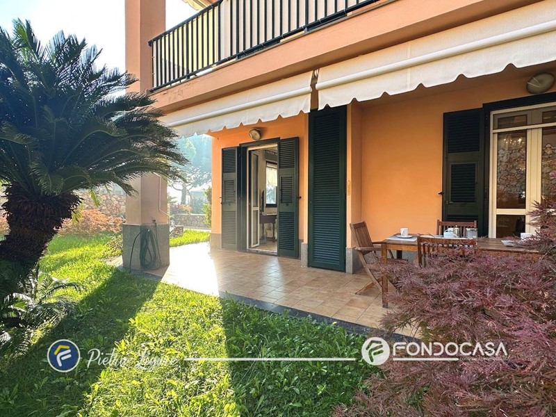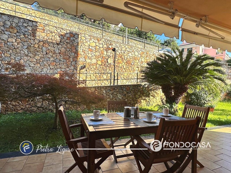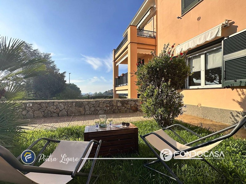 BILOCALE CON GIARDINO, PORTICATO, BOX AUTO E CANTINA IN VENDITA A PIETRA LIGURE.