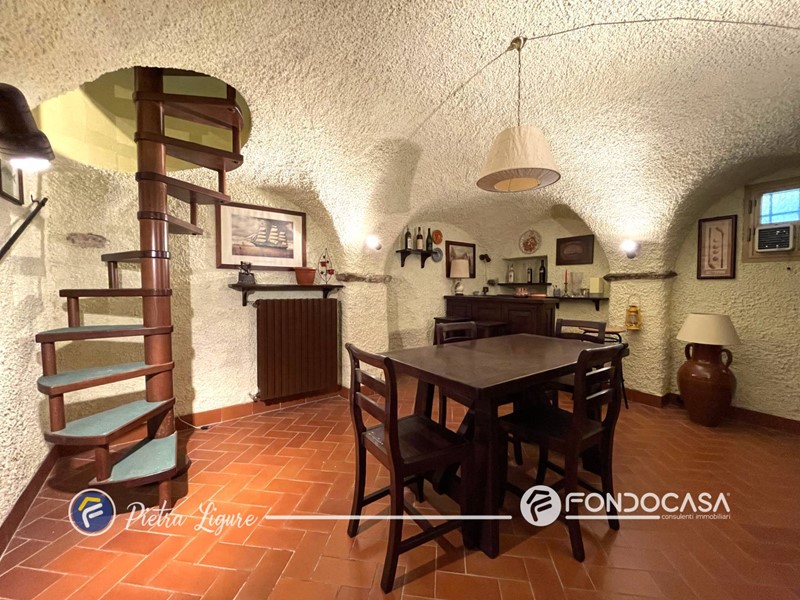 Una scala interna in legno ci accompagna al piano inferiore dove si sviluppa la parte più conviviale della casa, caratteristica dalla taverna, cucina con forno a legna ed una sala relax.