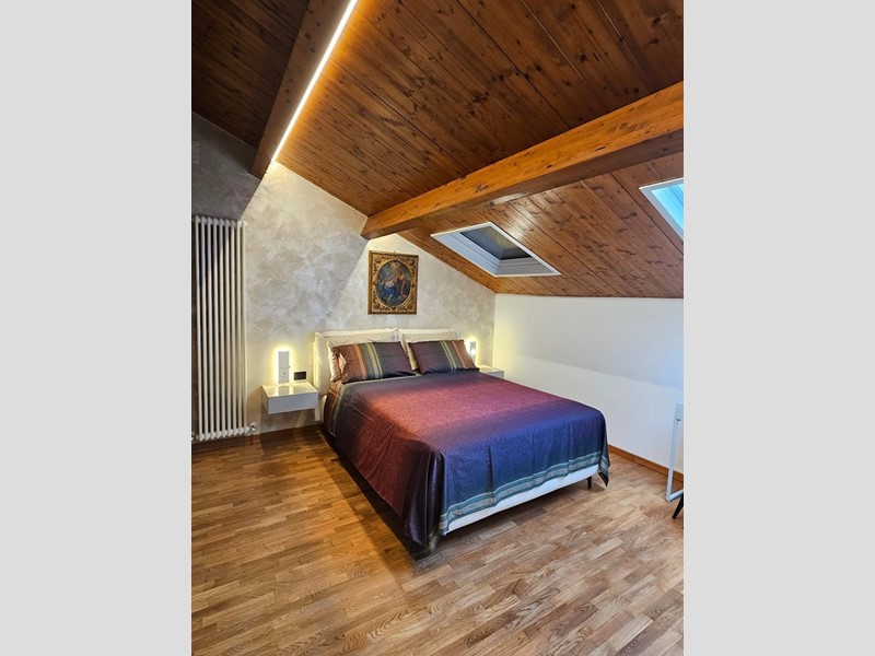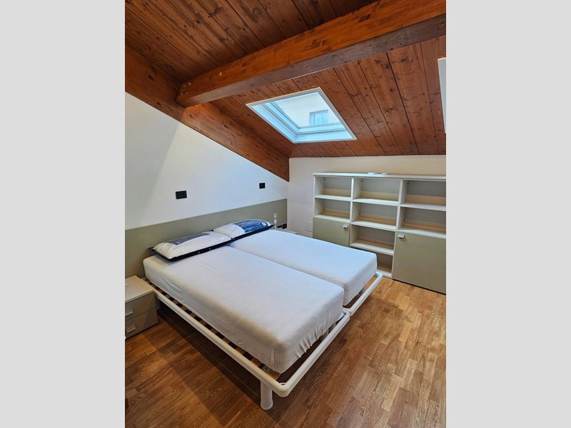 Appartamento mansardato composto da ingresso, soggiorno con cucinotto a vista e terrazzino, 2 camere da letto matrimoniali e 2 bagni posto al secondo e ultimo piano con ascensore, in contesto di pregio nel centro storico di Ravenna. L'appartamento é mansardato con travi in legno a vista, riscaldamento autonomo ed é climatizzato oltre a lucernai motorizzati.