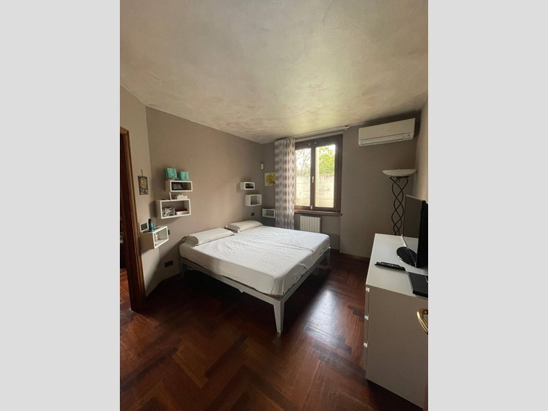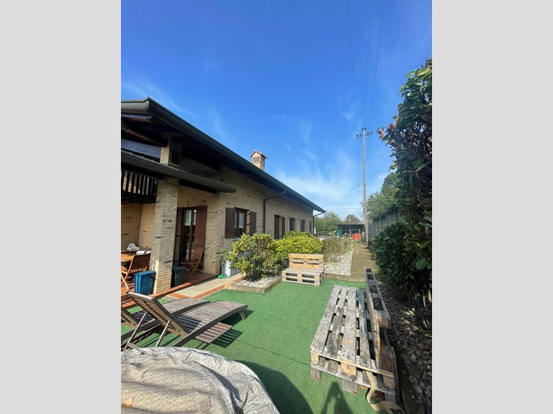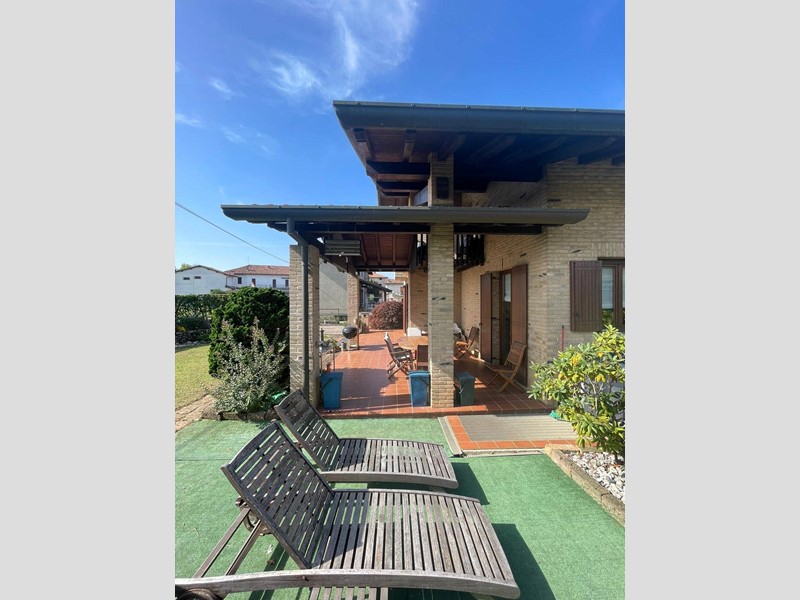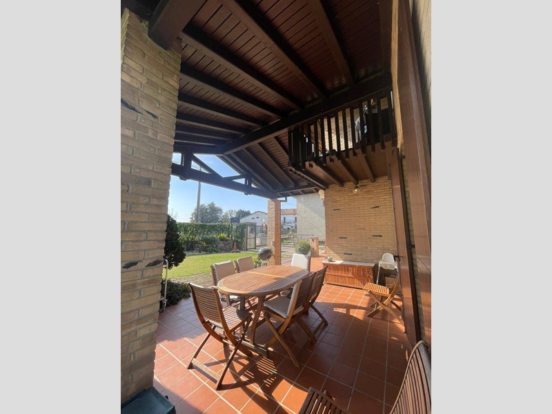 Il Piano terra di circa 142 mq è così disposto: si accede dall'ingresso su un soggiorno doppio, cucina abitabile, bagno di servizio, ripostiglio finestrato e una camera, disimpegno che porta alla zona notte con due camere, due bagni di cui uno di servizio e uno padronale, camera matrimoniale con cabina armadio con accesso al balcone e bagno privato con vasca. Dalla cucina e dalla zona giorno è possibile fruire dell'ampio spazio esterno porticato. Le tre camere e la zona soggiorno sono fornite di impianto di climatizzazione. Scala in muratura che porta al piano mansardato.