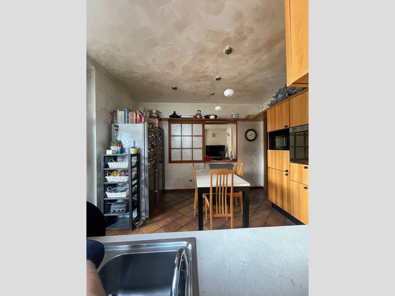 Piano interrato di 142 mq circa così disposto: ampio laboratorio artigianale con zona ufficio, doppi servizi con box doccia (ad oggi in uso come lavanderia) e cucina abitabile.