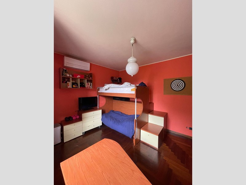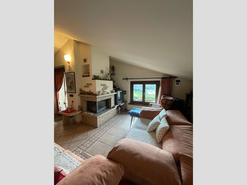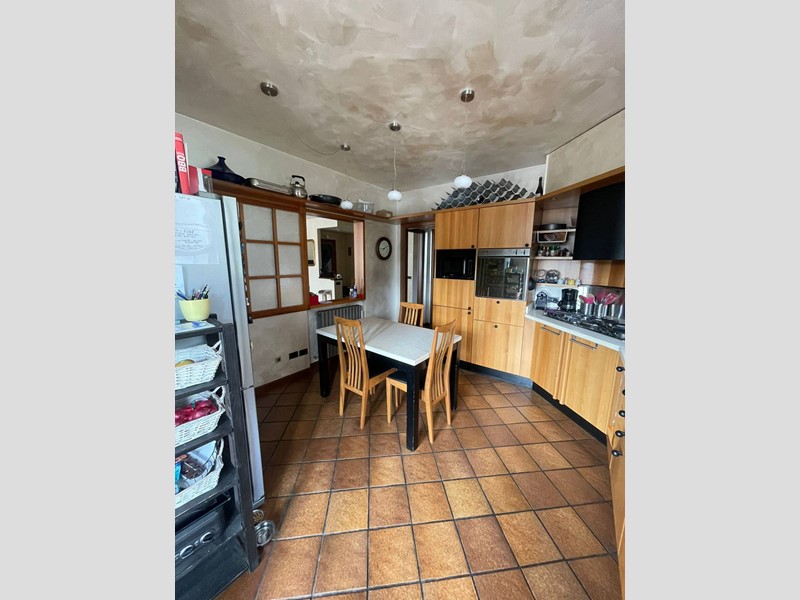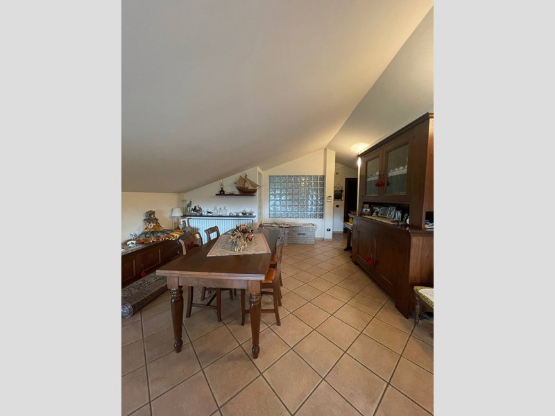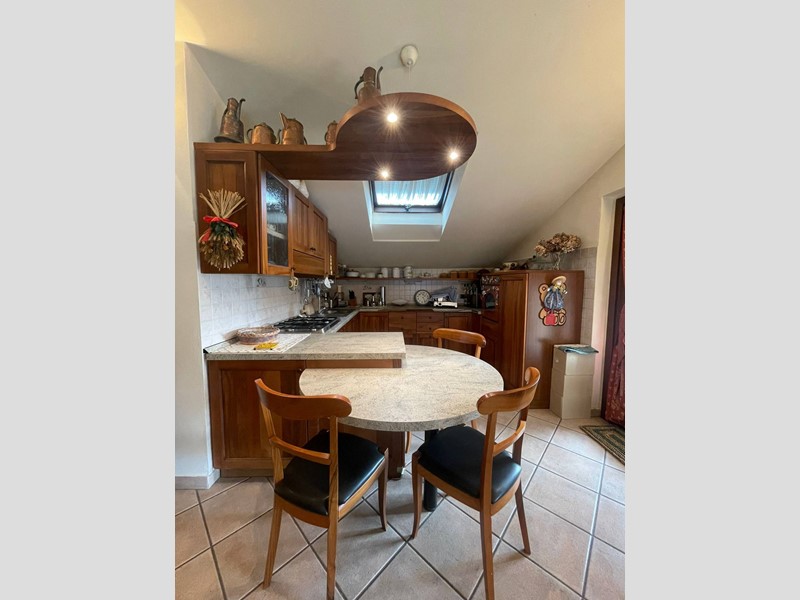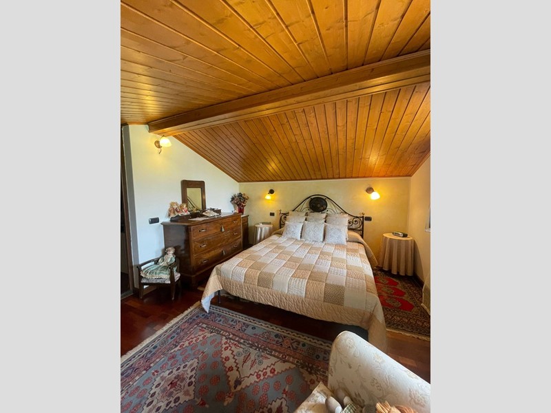 Piano mansardato (agibile non abitabile) 142 mq così composto: ingresso su ampio soggiorno riscaldato da suggestivo camino funzionante e cucina a vista con accesso alla loggia esterna, camera/studio, disimpegno notte con armadiature, camera padronale e bagno con vasca e box doccia (piccolo ripostiglio).