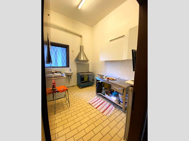 Gli spazi al suo interno sono così suddivisi: al piano terra (100 mq complessivi) troviamo il locale principale, ossia il negozio, uno spazioso retro bottega, un vano attualmente adibito a cucina ed il servizio igienico; da montacarichi interno si accede al piano seminterrato ad uso deposito/laboratorio, composto da due vani e disimpegno. Da questo piano è possibile accedere, attraverso le parti comuni del condominio, ad un box di pertinenza in cui è ubicato il motore del montacarichi.