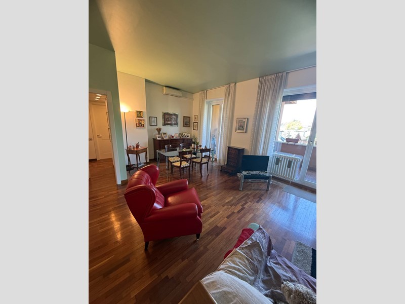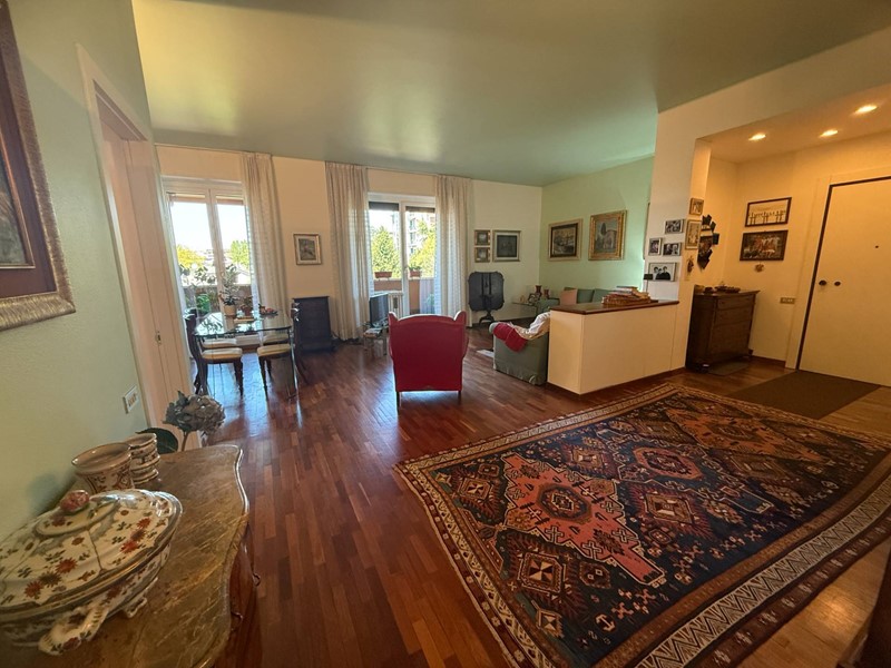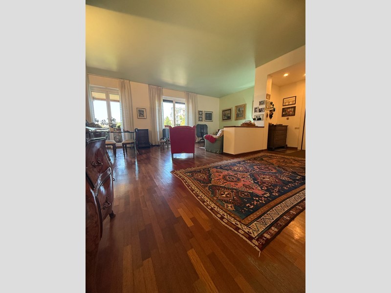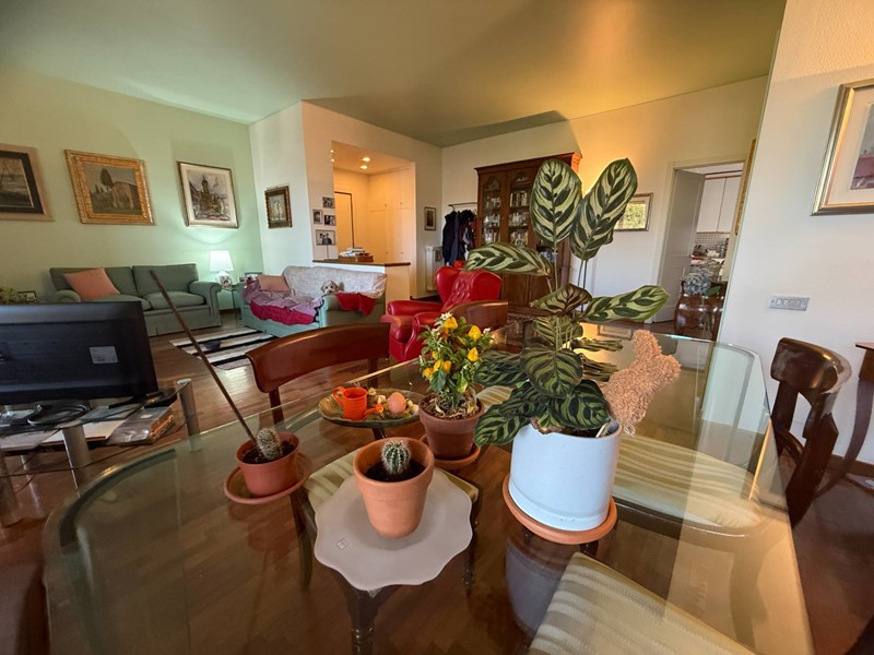 L'immobile, situato al quarto piano di una palazzina di cinque piani con ascensore, è stato costruito nel 1970 ma si presenta in ottimo stato di manutenzione. Al momento della vendita sarà libero al rogito, permettendo così all'acquirente di poter entrare subito in possesso della sua nuova casa. L'appartamento si estende su una superficie totale di 121 metri quadrati, immerso in un ampio parco condominiale con piscina coperta, campi da tennis e servizio portineria.