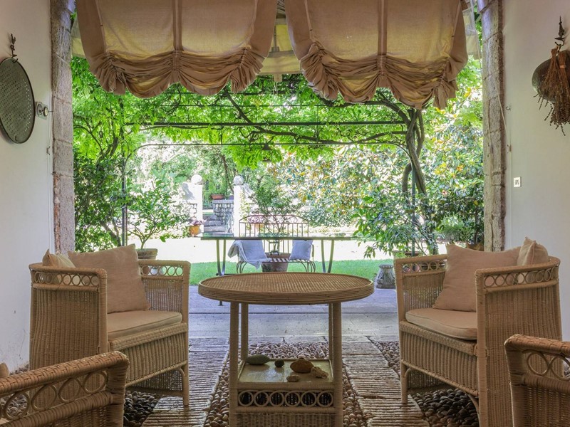 La villa si apre su una grande corte lussureggiante, un'oasi privata dove la natura incontra l'arte. Un incantevole laghetto e bellissimi porticati ti accoglieranno, offrendoti un'atmosfera unica e suggestiva che riporta indietro nel tempo.