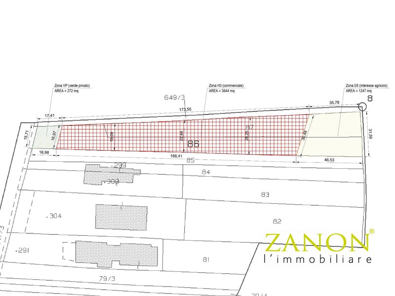 All'ingresso della città di Gorizia, sulla Strada Statale 55, proponiamo in vendita un terreno di circa 5300 mq di cui 3844 mq edificabili con destinazione commerciale/artigianale (Zona urbanistica H3), 1247 mq con destinazione agricola e 272 mq circa con destinazione verde privato.
