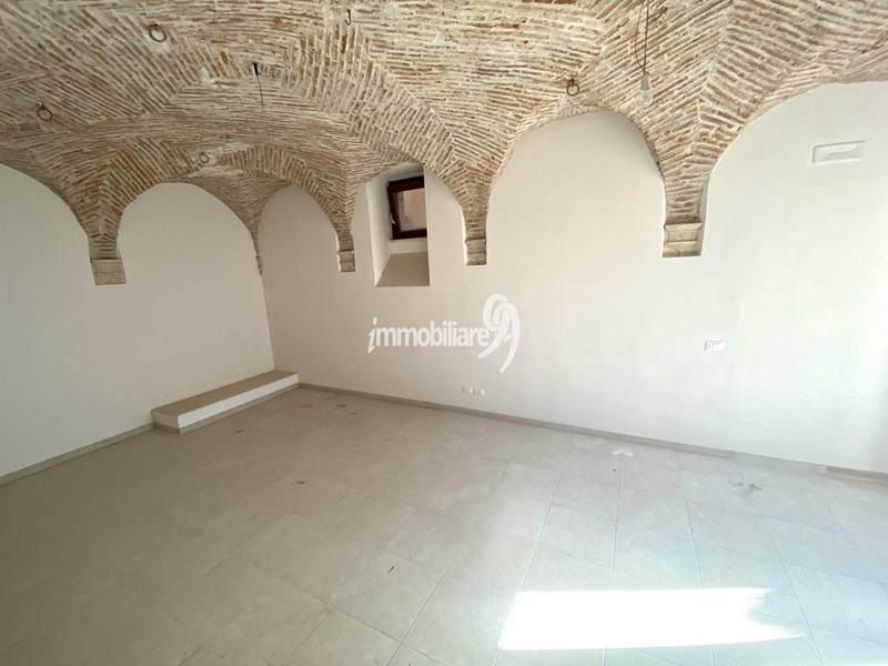 Entrata su una prima stanza, circa 33 mq, con un terrazzo di circa 20mq (punto forte). Un Bagno con finestra. Da questa stanza accediamo sull'altra, circa 28mq, dove troviamo un soffitto a stella con mattoncini, un secondo terrazzo di circa 50mq.(punto forte) Totale terrazzi 66 mq totali ideali come spazio relax o per attività all'aperto.