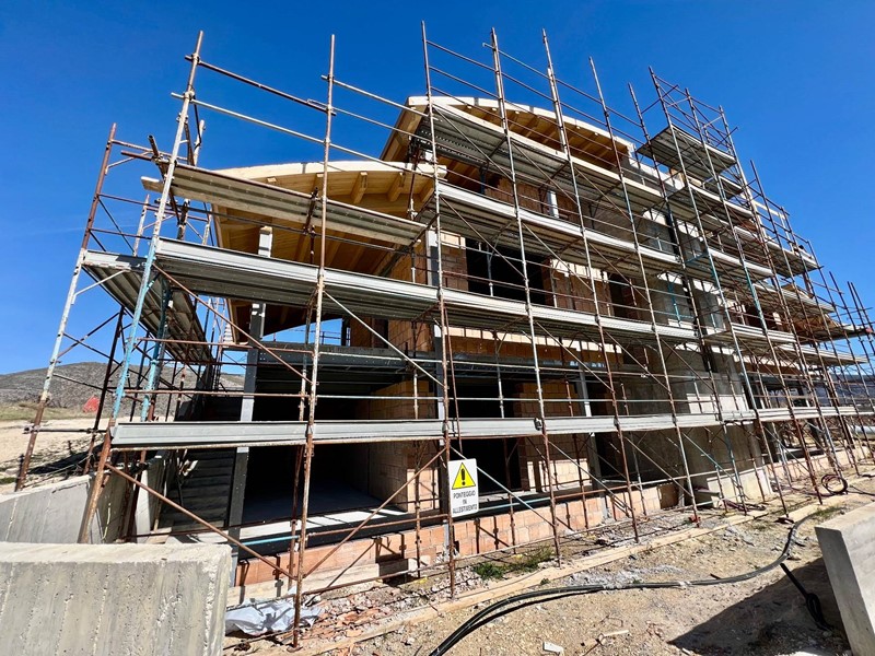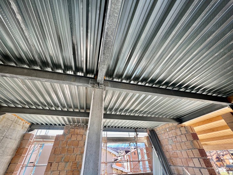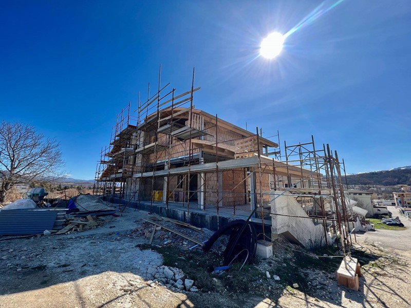 La struttura sarà antisismica in quanto la tipologia costruttiva realizzata è in acciaio e cemento armato e le rifiniture saranno effettuate secondo le migliori regole dettate dall'arte muraria con materiali di prima qualità, il primo ed il secondo impalcato sono realizzati con solai in struttura mista acciaio-calcestruzzo mediante l'impiego di lamiere grecate e la copertura in legno lamellare con profilo geometrico curvo e sarà trattato con impregnanti ecologici contro muffe, funghi ed insetti xilofagi; le murature perimetrali saranno eseguite con blocco in laterizio forato con spessore cm 30 su cui verrà applicato un rivestimento esterno a cappotto in polistirene dello spessore del solo materiale isolante di cm 10.