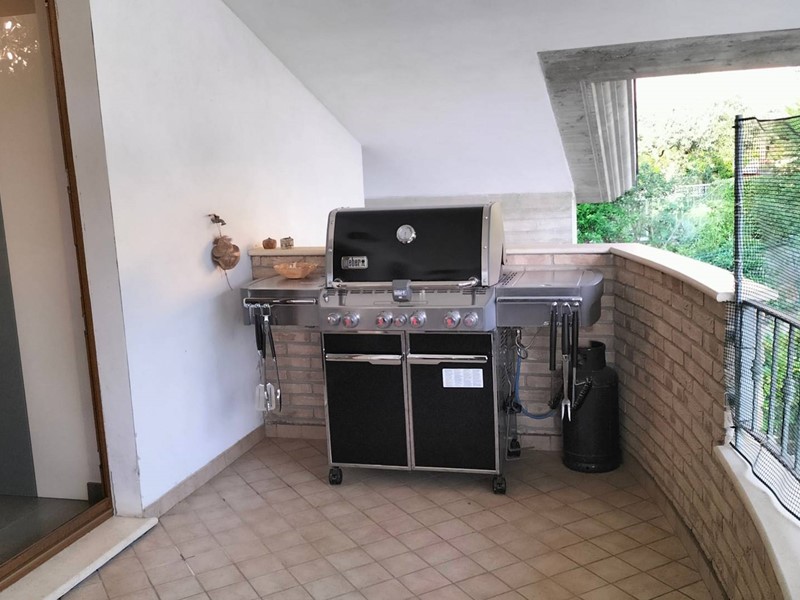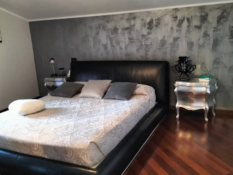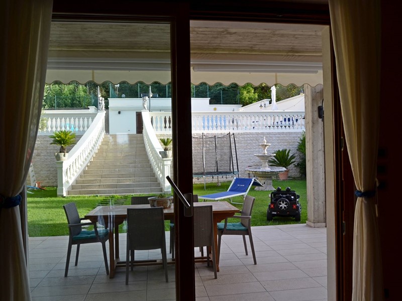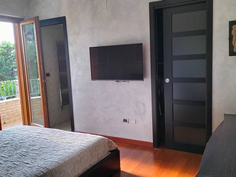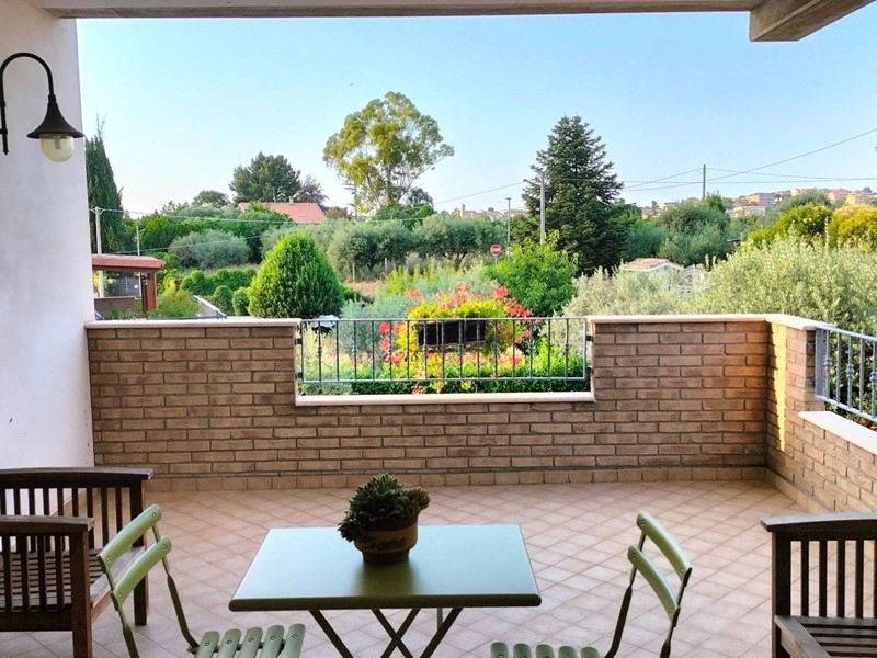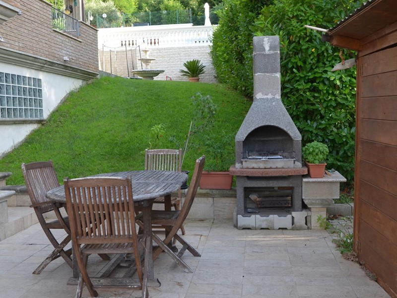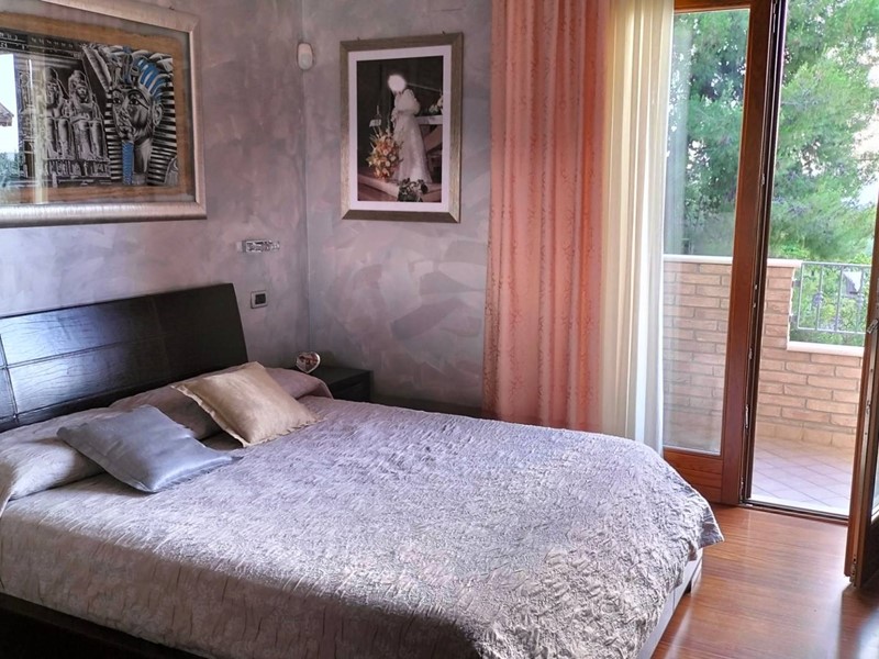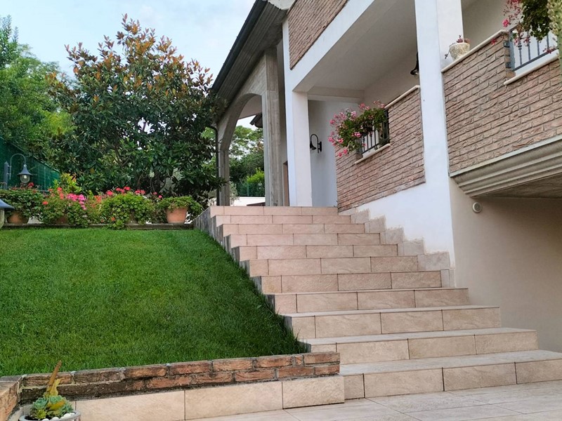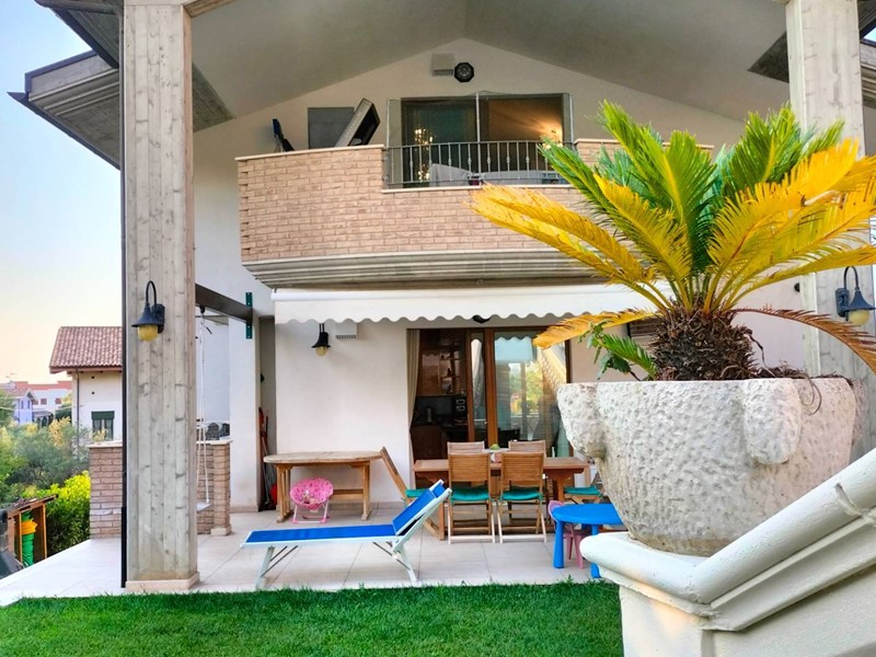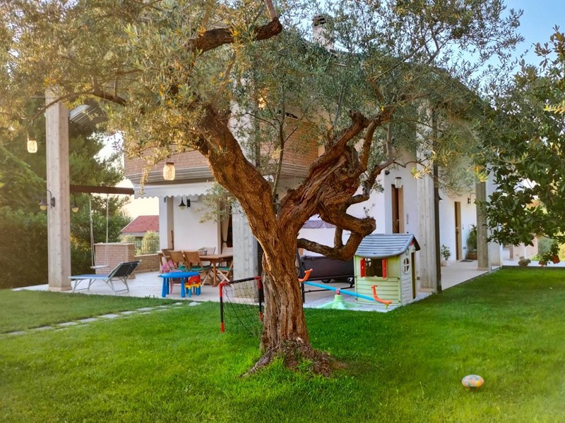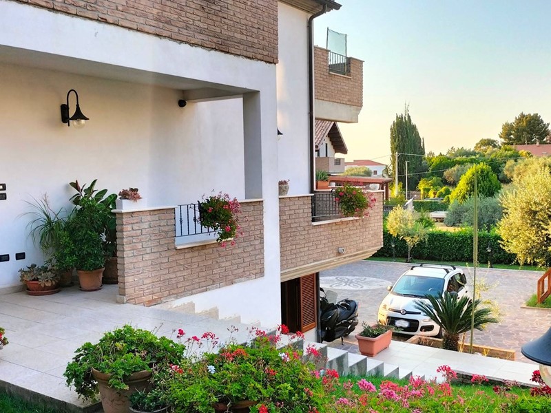 Villa con piscina in Montesilvano Colle, zona residenziale non isolata. La villa si sviluppa su tre livelli, al livello seminterrato troviamo ampia taverna con accesso anche indipendente ideale per serate conviviali, garage, cantina, e locale di sgombero ; Primo livello residenziale composto da ingresso soggiorno, cucina aperta con zona pranzo con camino e accesso sul giardino superiore che conduce alla piscina, camera, camera matrimoniale con bagno e guardaroba, bagno con doccia; secondo livello mansardato residenziale, composto da ingresso soggiorno con cucina a vista, area pranzo e due terrazzini di cui uno con bella vista sulla piscina, la zona notte è composta da due camere con balcone e due bagni. Il giardino è diviso in tre livelli, il più basso quasi completamente pavimentato adibito soprattutto al parcheggio di auto scoperto e coperto. Il secondo livello del giardino è quello del primo piano residenziale ed è attrezzato a spazio conviviale e giochi, da questo giardino una scalinata conduce al livello superiore dove troviamo una piscina 5 x 10 metri attrezzata, altra scala conduce all'ultimo livello attrezzato ad orto biologico.