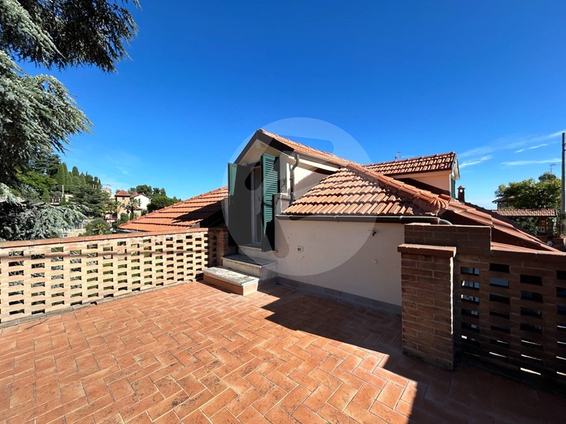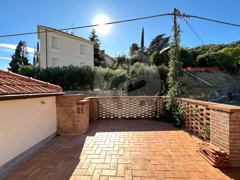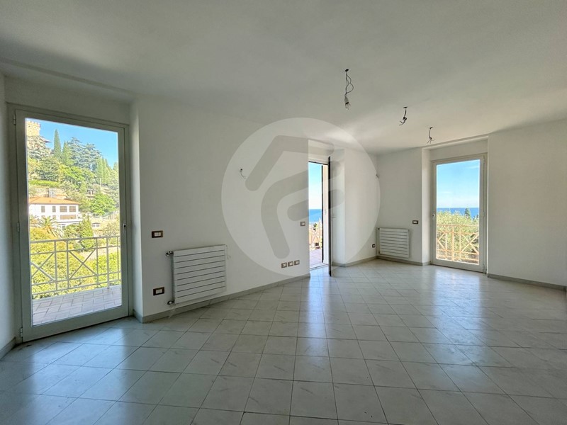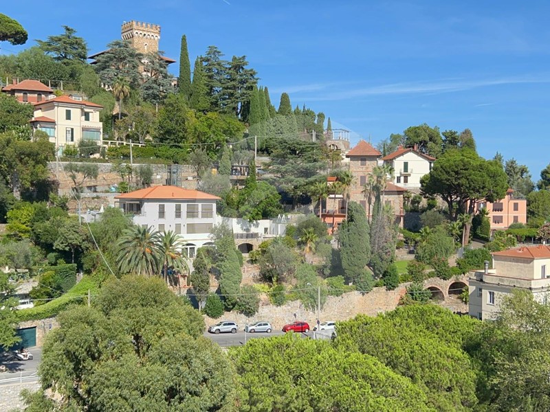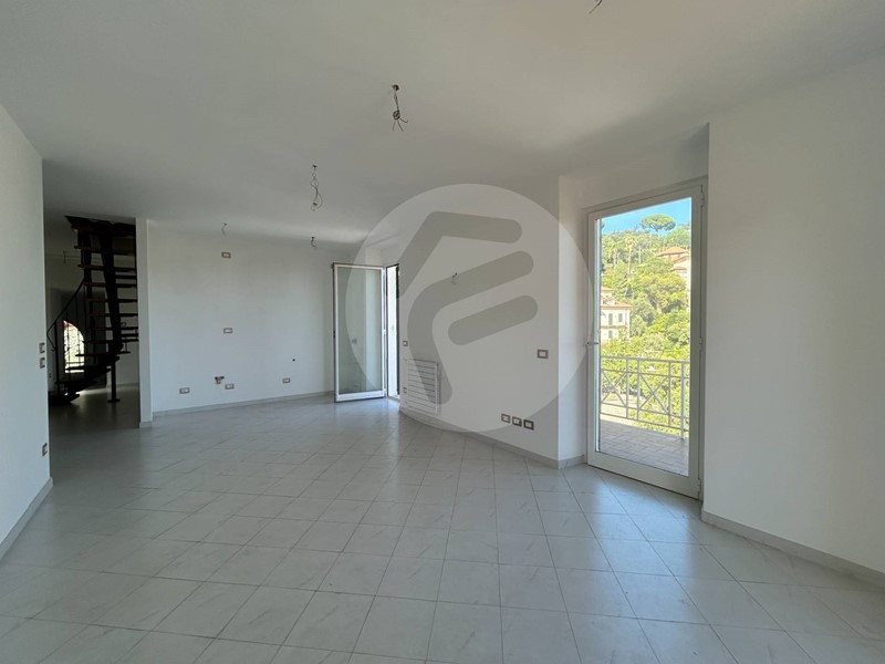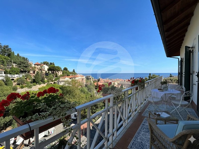 Alle spalle del centro con splendida vista mare, proponiamo in villa d'epoca ampio appartamento sito all'ultimo piano, libero su quattro lati e disposto su due livelli. Internamente è stato oggetto di totale e recente ristrutturazione e risulta così composto : ingresso indipendente, corte esterna in proprietà adatta per ricoverare biciclette e motorini, ampio soggiorno con cucina a vista, due camere matrimoniali, doppi servizi e un profondo terrazzo perimetrale. Al piano soprastante, raggiungibile con scala interna, si accede ad un grande locale mansardato con gradevole affaccio sul mare e ampio e luminoso terrazzo laterale. Al piano strada adiacente all'immobile troviamo un piccolo box auto con finestra e collegamento interno all'appartamento che può essere destinato a locale di sgombero oppure, in seguito ad una pratica edilizia, potrebbe essere adibito ad ulteriore camera da letto . Possibilità di un comodo box auto poco distante dall'immobile.
