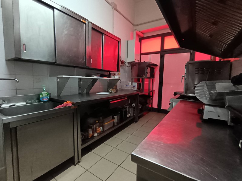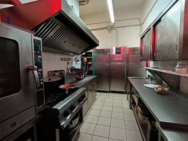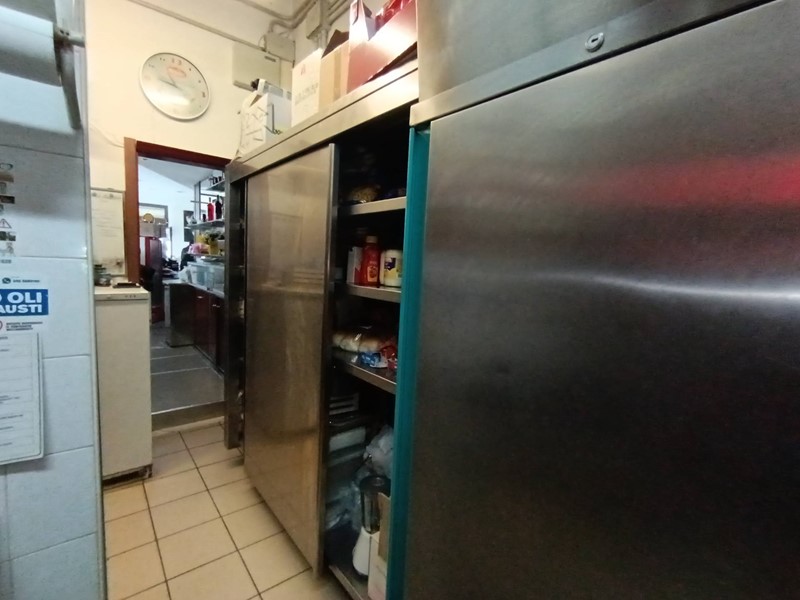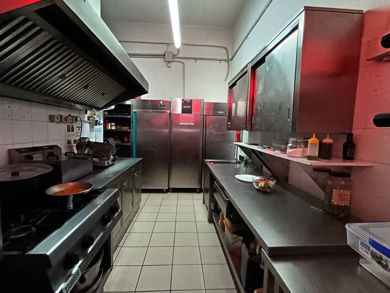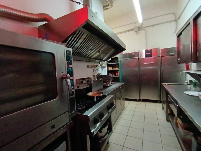 1 microonde, 2 tavoli acciaio, 2 pensili acciaio, 1 lavandino acciaio, 1 cappa 3 metri, 1 friggitrice doppia, 4 fuochi zanussi, 2 frigo, 1 congelatore, 1 forno convenzione, 1 affettatrice, 1 dispensa acciaio, 2 armadi da due metri, 1 lavastoviglie cucina, 2 lavandini acciaio, 1 scolapiatti acciaio.