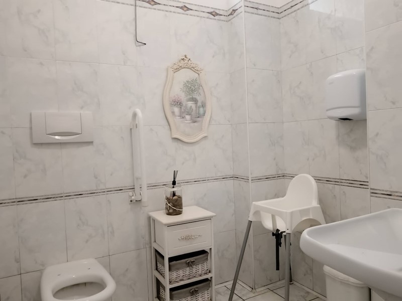 Bar comprensivo di 80 posti a sedere con relative sedie e tavoli, bagno e spogliatoio per dipendenti, bagno per clienti.
