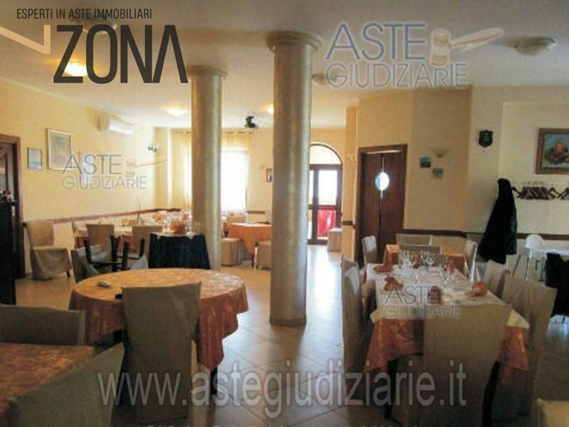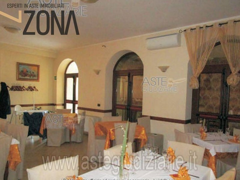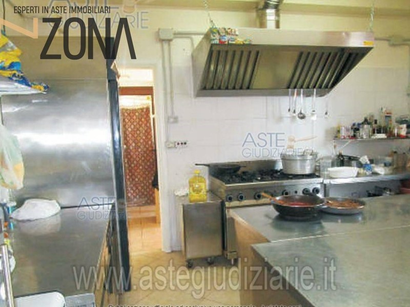----> Fabbricato ad uso opificio con destinazione attuale a ristorante e locali accessori, a due livelli, con area esterna perimetrale a corte esclusiva. Si compone di ingresso bar, sala ristorante, cucina e ambienti di servizio, 2 bagni e un antibagno, ascensore interno e due portici. Il piano seminterrato, a cui si accede ad una scala interna con ascensore e da corte esterna, ospita un disimpegno, due locali deposito, una cantina, uno spogliatoio, due centrali termiche ed un portico esterno.