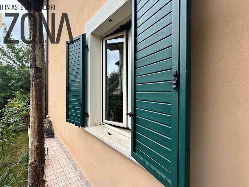 La disposizione interna è composta da: soggiorno con angolo cottura, 2 camere da letto, bagno e area esterna destinata a giardino e parte pavimentata. Dal soggiorno, attraverso una scalinata si scende alla taverna con camino e bagno dalla quale si accede al box auto.