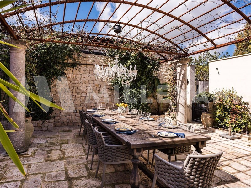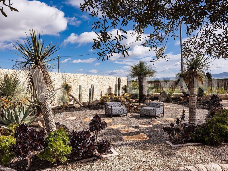 A completare la proprietà una chiesetta privata, una grotta con sorgente di acqua dolce, riserva idrica, impianto fotovoltaico, impianto a pavimento caldo/freddo, area giochi per bambini, giardino privato piantumato con alberi e piante tipici della flora mediterranea e parcheggio che può ospitare fino ad 8 auto