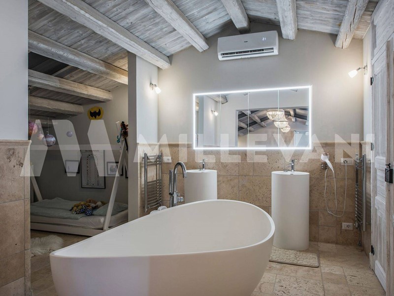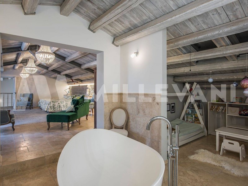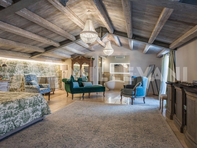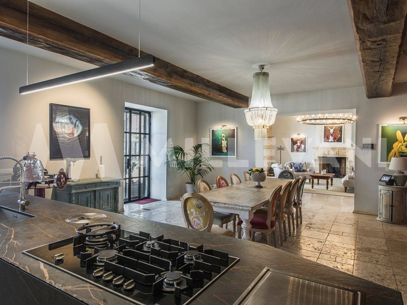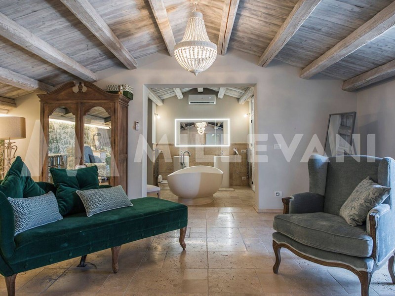 La villa padronale, di circa 350 mq, ristrutturata nel 2021 è dotata di tutti i comfort, di finiture di pregio, pregiati mobili antichi e antico camino francese del 1688.