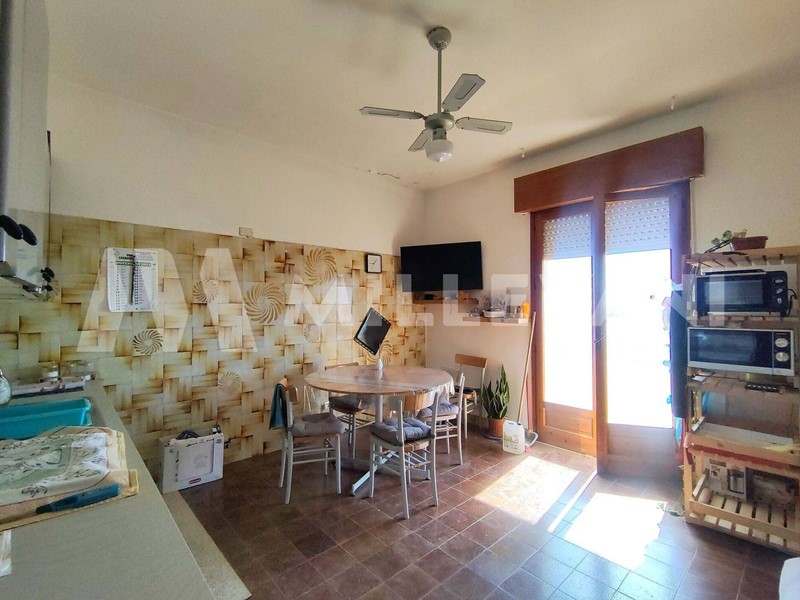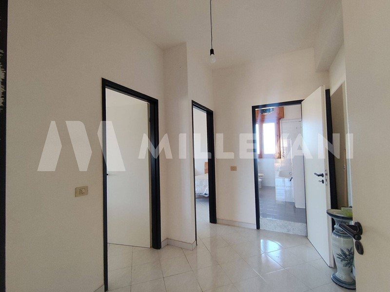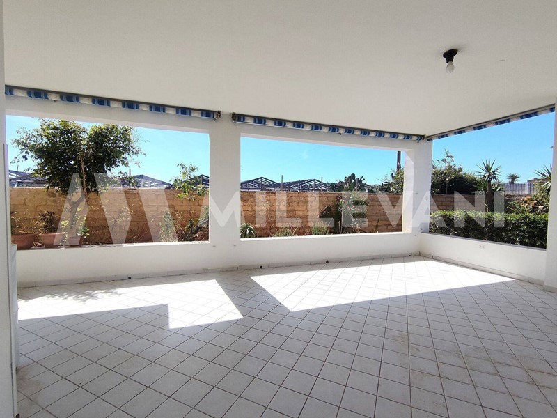 Limmobile, di circa 240 mq totali, disposto su due livelli, è composto al piano terra da un ampio salone, due camere da letto, cucina, ripostiglio, bagno, un doppio servizio/lavanderia e una comoda veranda coperta.