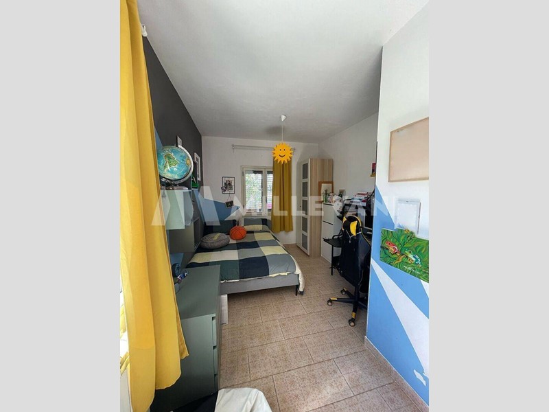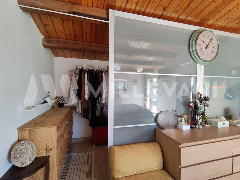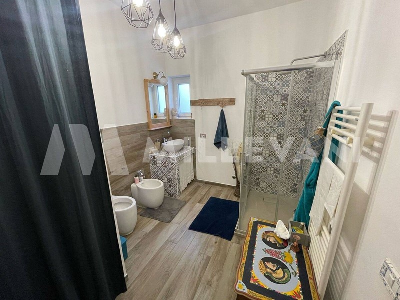 Sempre a piano terra abbiamo una camera da letto e un bagno. Dal salotto una scala a giorno ci porta al primo piano mansardato dove troviamo un vano e una camera da letto dotata di cabina armadio, bagno privato e affaccio sul terrazzo panoramico.