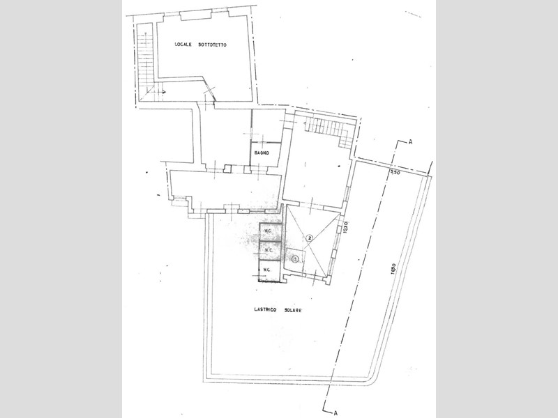Tramite scala interna, che si diparte dal salone, si accede al secondo piano composto da una mansarda di circa 130 mq composta da cucina, ripostiglio, bagno e veranda coperta e una grande camera matrimoniale e bagno.