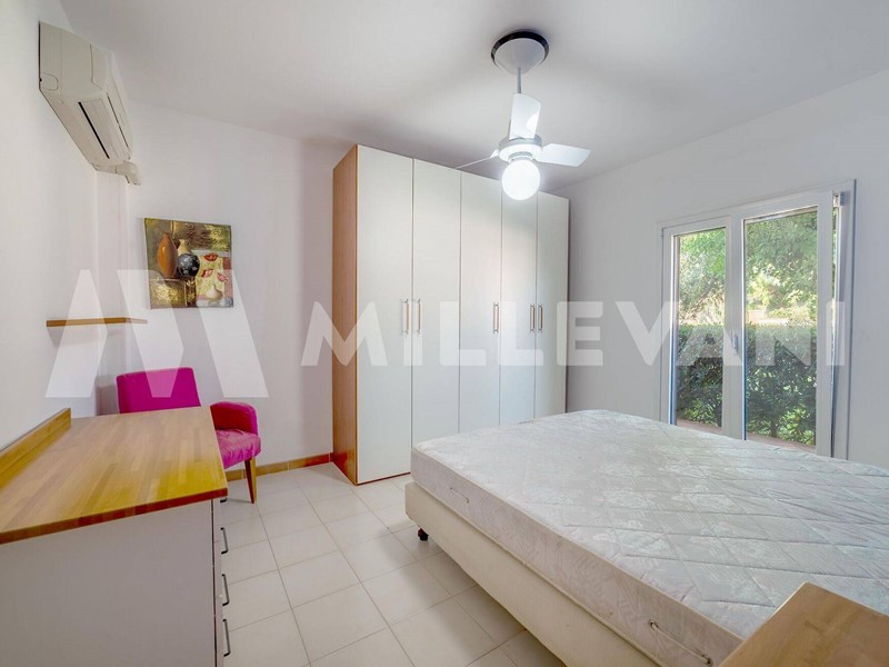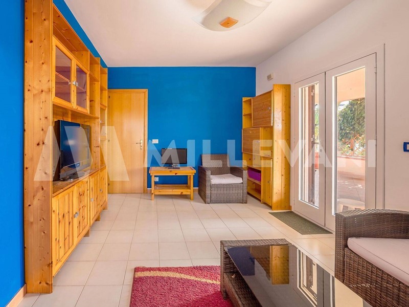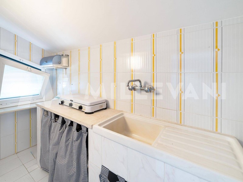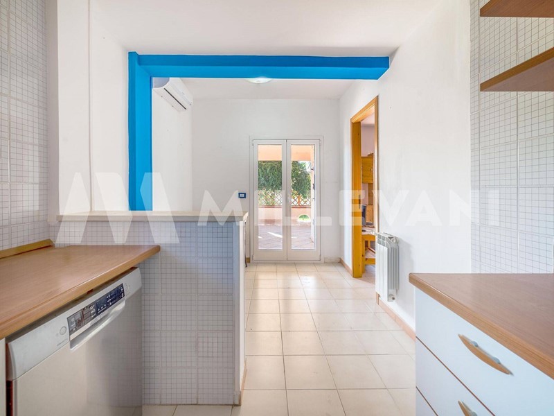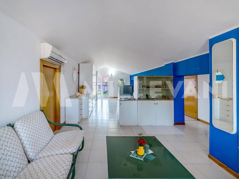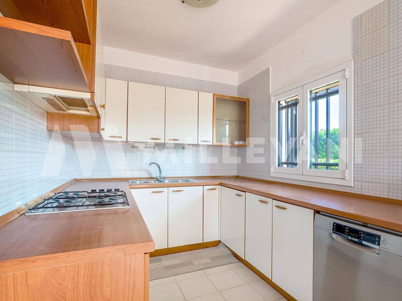 Limmobile di circa 160 mq, disposto su due livelli, è composto al piano terra da soggiorno, cucina, due camere da letto, bagno, ripostiglio, lavanderia con doccia e giardino dinverno.