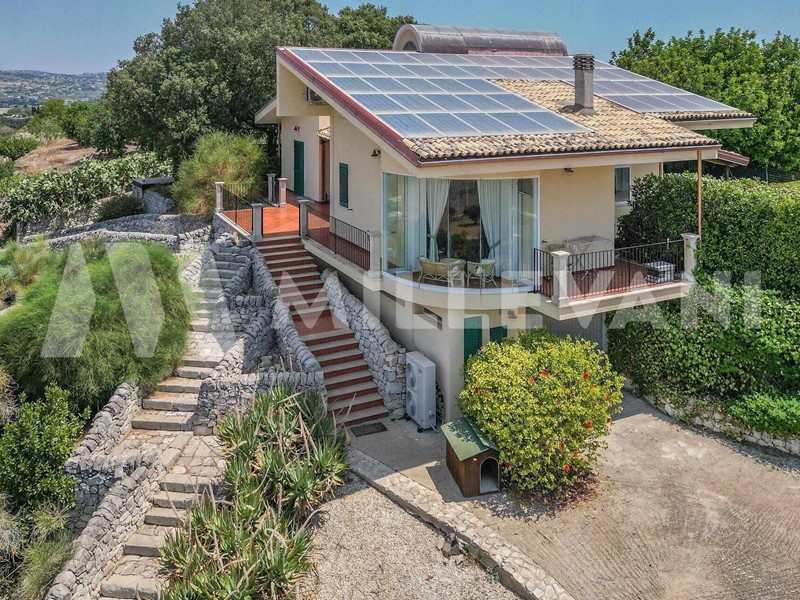 In una posizione panoramica tra i monti Iblei, questa elegante villa si trova tra Modica e Scicli su un terreno di circa 14500 mq. La proprietà, finemente rifinita e dotata di ogni comfort moderno, si sviluppa su tre livelli offrendo una vista spettacolare.