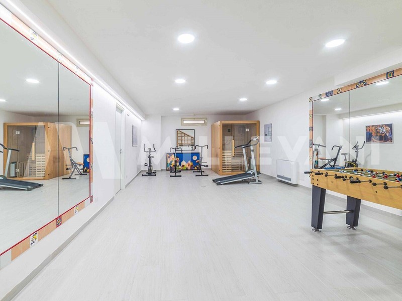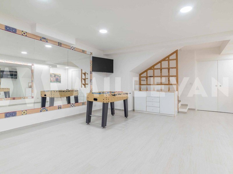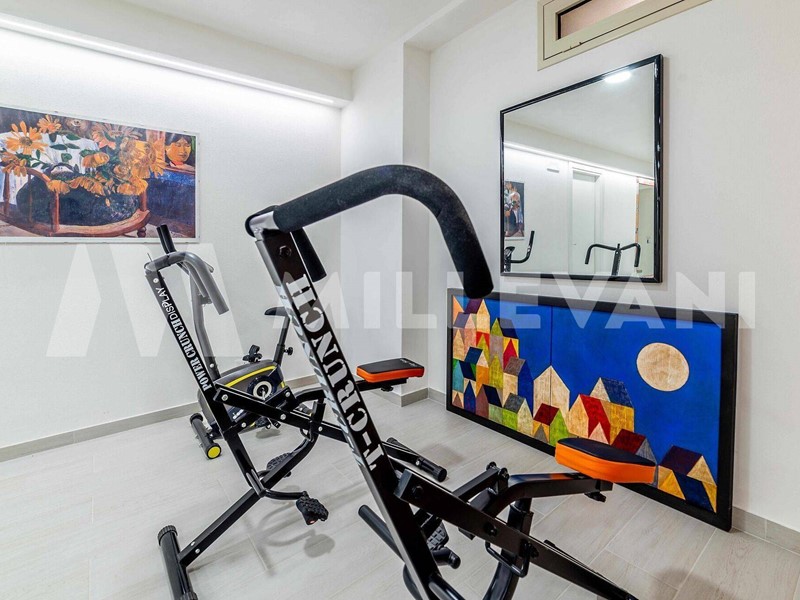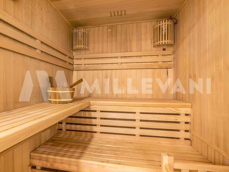 Al piano seminterrato si trova un garage rustico di circa 80 mq, una zona spa con sauna, una palestra e un bagno. Il piano terra ospita un ampio e luminoso soggiorno con camino, una sala da pranzo, una cucina, un bagno di servizio, 3 camere da letto di cui una con bagno privato. Al piano superiore sono state ricavate altre due camere da letto e un bagno.