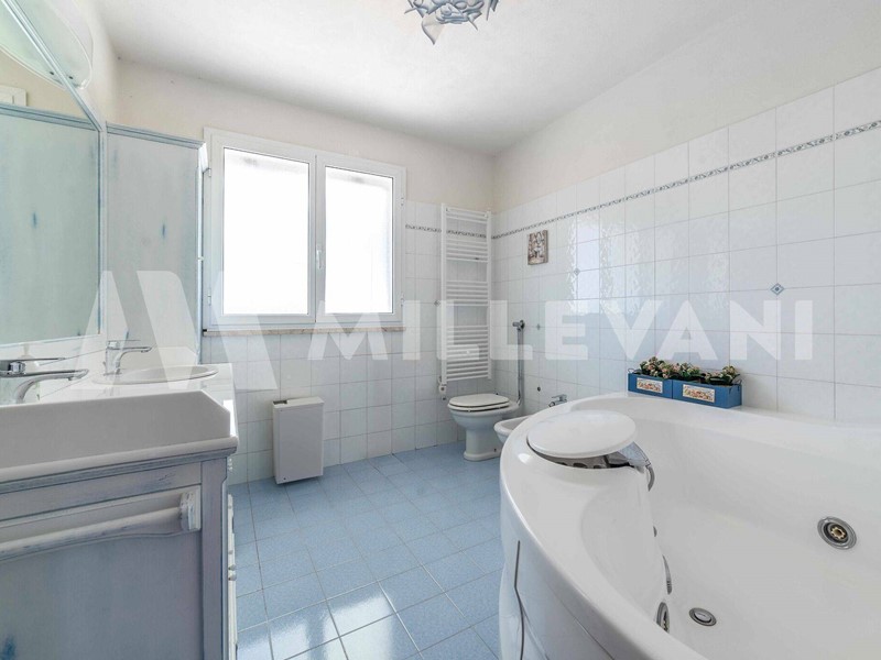 La villa vanta una splendida piscina con vista panoramica, un ampio parcheggio e un giardino ben curato che circonda l'intera proprietà. Inoltre, è presente un impianto fotovoltaico da circa 12 kw con batterie di accumulo e un impianto solare termico.
