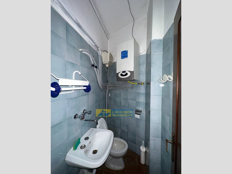 L'ampio LOCALE COMMERCIALE dotato di climatizzazione e caldaia per riscaldamento/acqua calda sanitaria potrebbe essere utilizzato per varie attività commerciali oppure come uso studio con front - office, 2 vani ad uso ufficio/studio e sala riunioni, spogliatoio/ripostiglio, oltre ad antibagno e bagno.