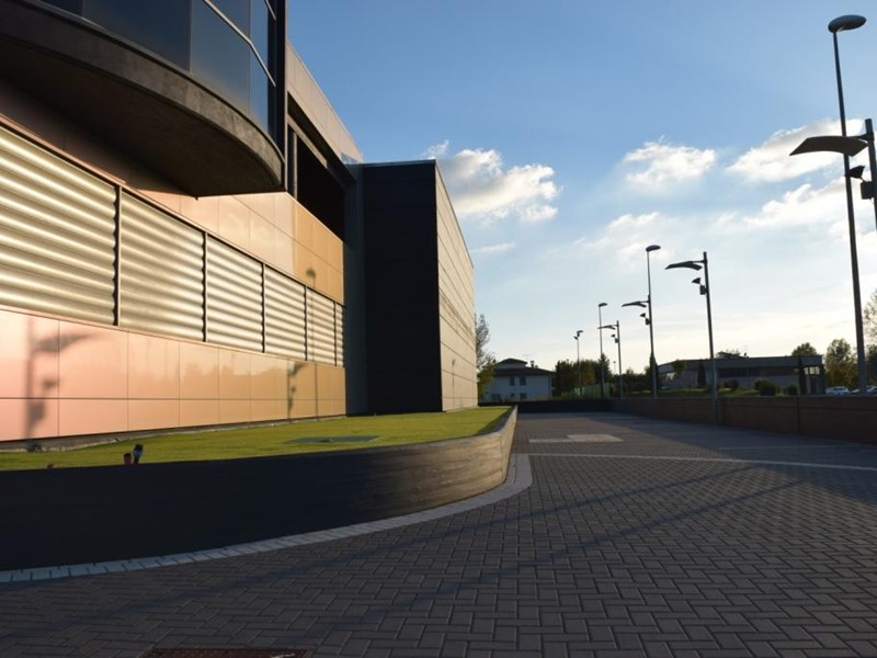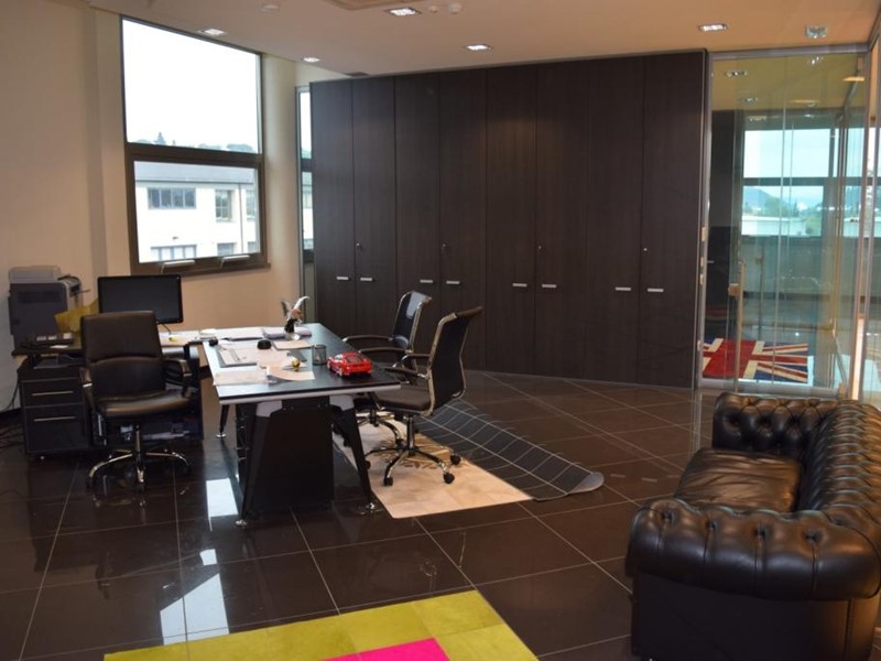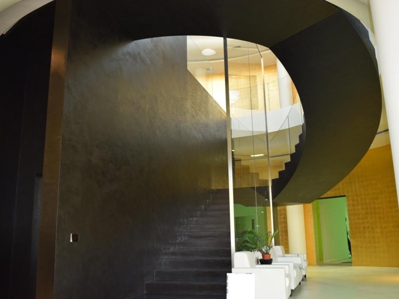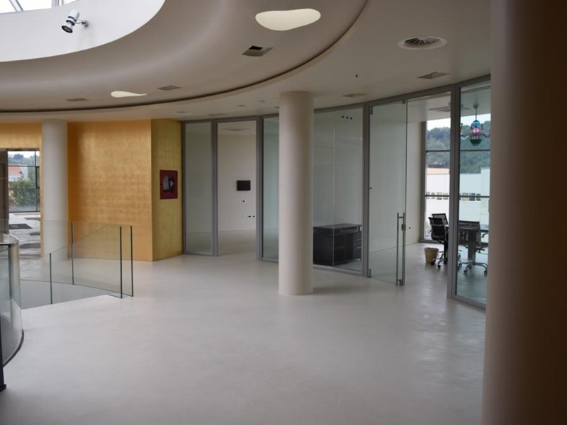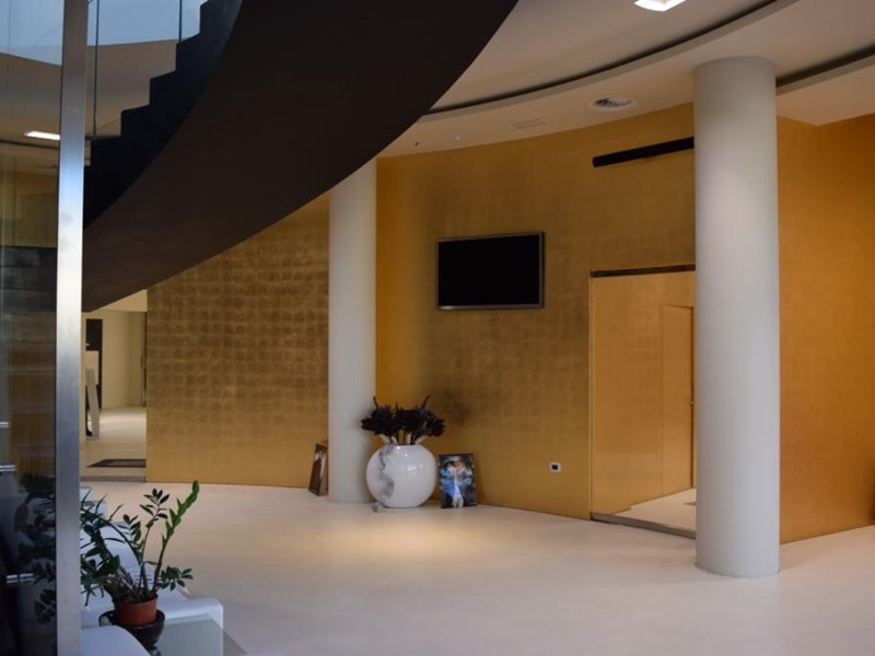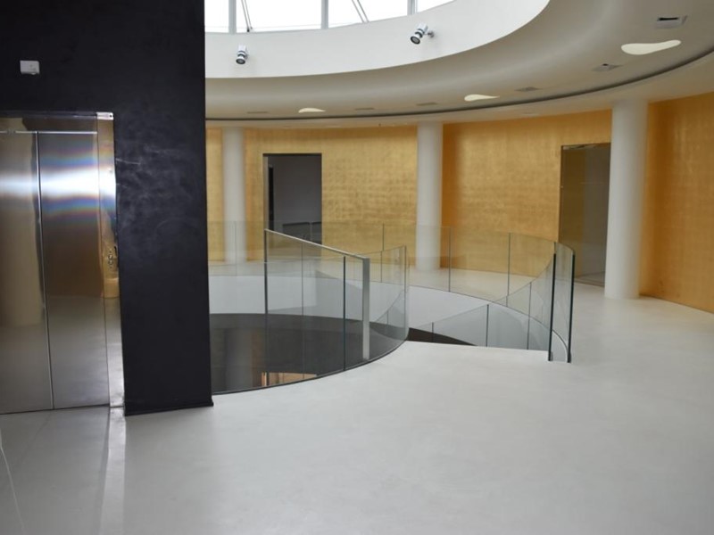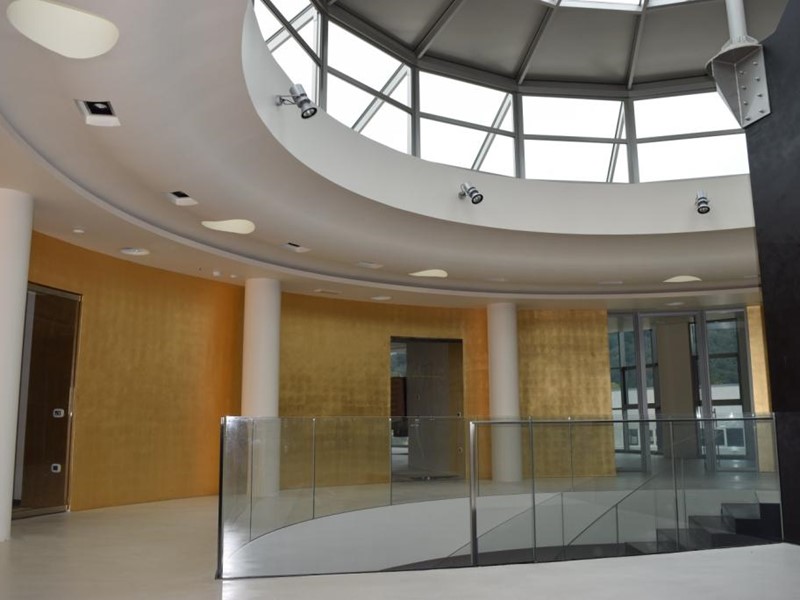 Il fabbricato completamente indipendente è disposto su due piani fuori terra, collegati da più vani scale di cui uno scenografico caratterizzato da parapetti in vetro e illuminato con luce naturale da una struttura vetrata di impatto.