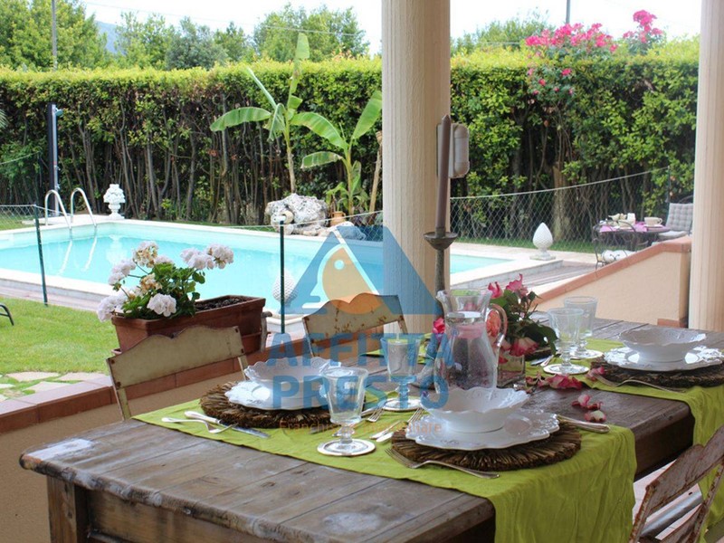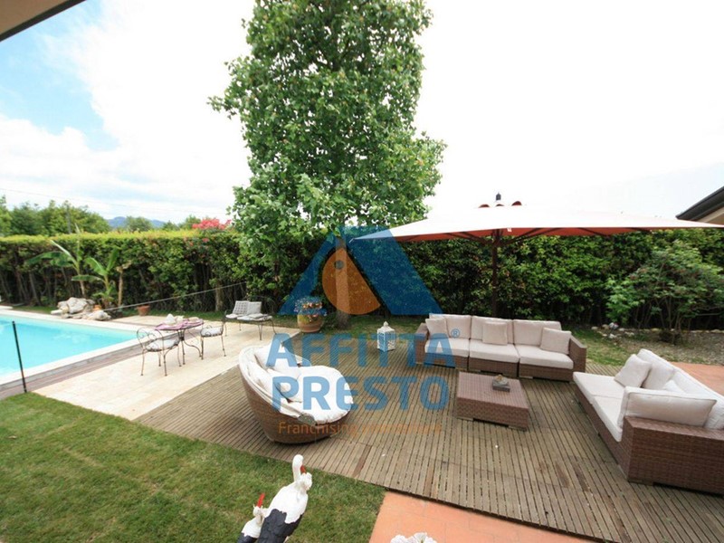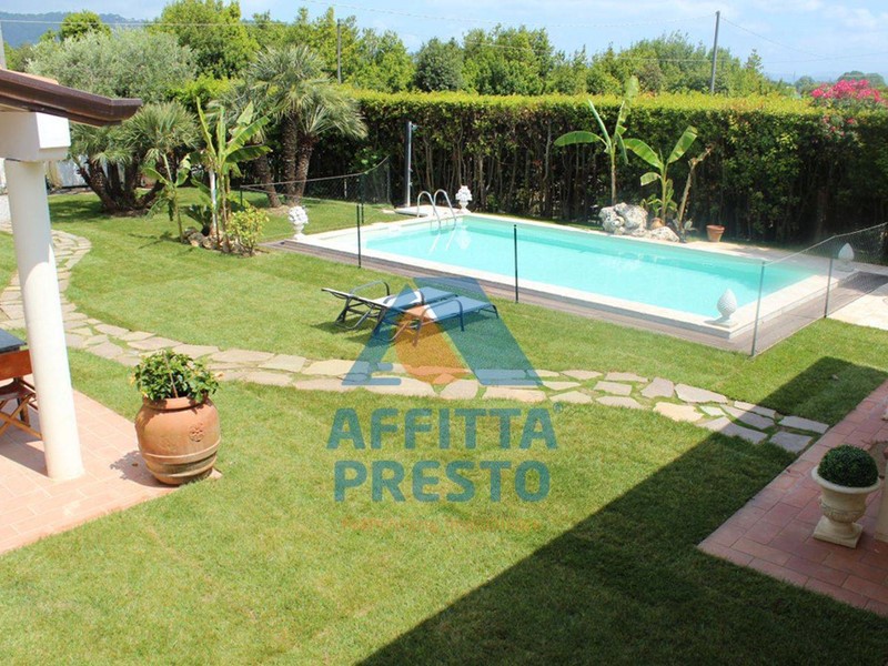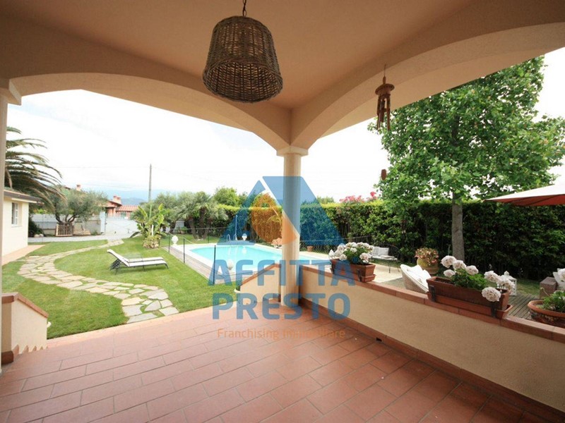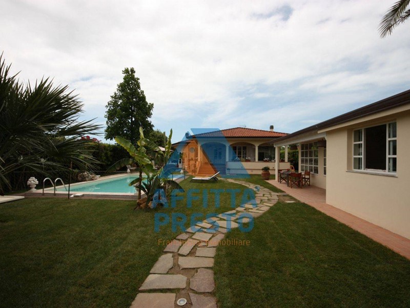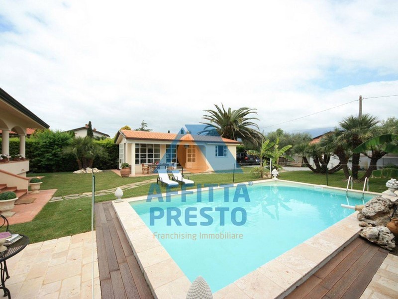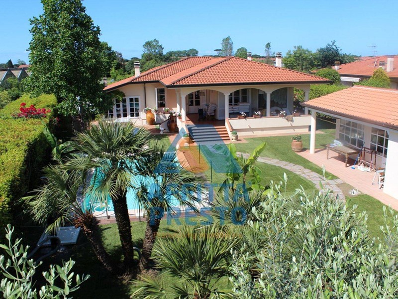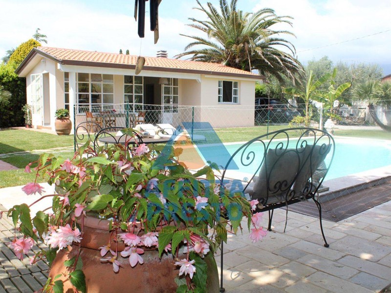 rif. AV5001 - Comune di Camaiore (LU) VILLA SINGOLA, a dieci minuti dal mare nella prima campagna, vendesi splendida villa su di un unico livello con taverna, e dependance, immersa in un giardino esclusivo di circa 1.000,00 mq. con piscina, Il corpo principale è di circa 190 mq. ed è composto da un ampio porticato vivibile, ingresso, ampio soggiorno con grandi vetrate, cucina abitabile, disimpegno da cui si accede ad una camera matrimoniale con bagno privato, una seconda camera matrimoniale ed una camera singola, bagno principale con doppio lavabo, vasca e doccia. Il giardino è attrezzato con aria esterna per divani ed ombrelloni a bordo piscina. la dependance di circa 65 mq. è stata attrezzata come camera per gli ospiti con bagno e palestra. Il piano seminterrato è stato addebito a magazzino e taverna. L'immobile per la sua disposizione e caratteristica è molto comodo, Rifiniture di pregio, con impianto di allarme, climatizzatore, impianto di irrigazione.