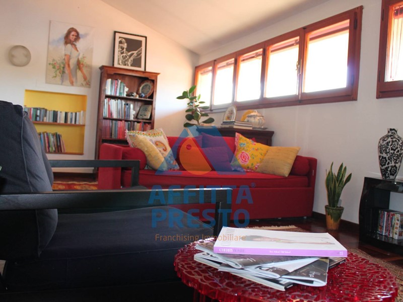 Un arredamento e colori caldi accoglienti danno un tocco di design unico con parquet a pavimento a spina italiana. La zona giorno composta da cucina angolare e soggiorno su piano rialzato con camino rivestito in pietra.