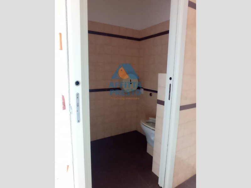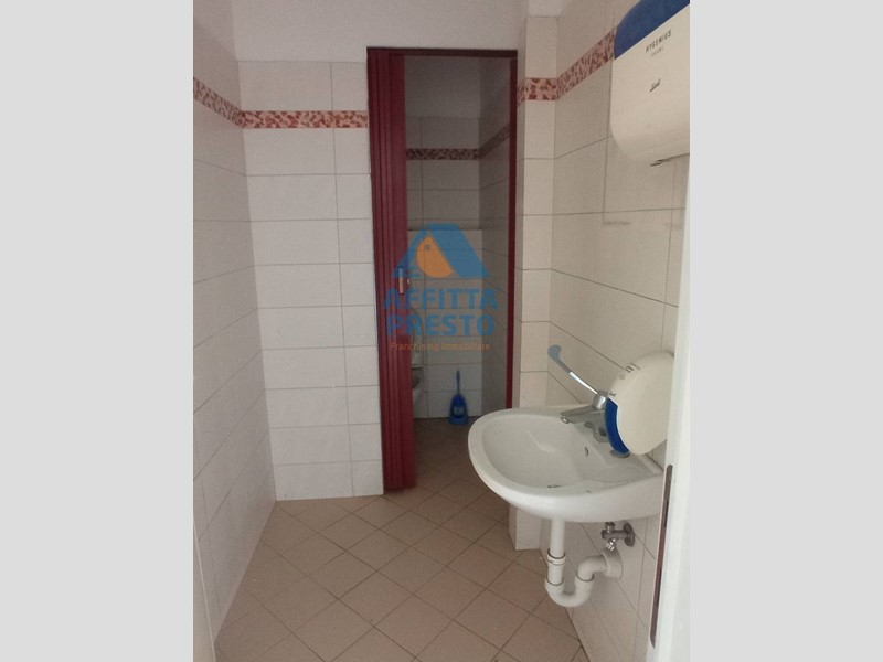 L'immobile è composto da due vani, ha due bagni, uno per i clienti a norma per portatori di handicap e uno per gli addetti con antibagno per armadietti.