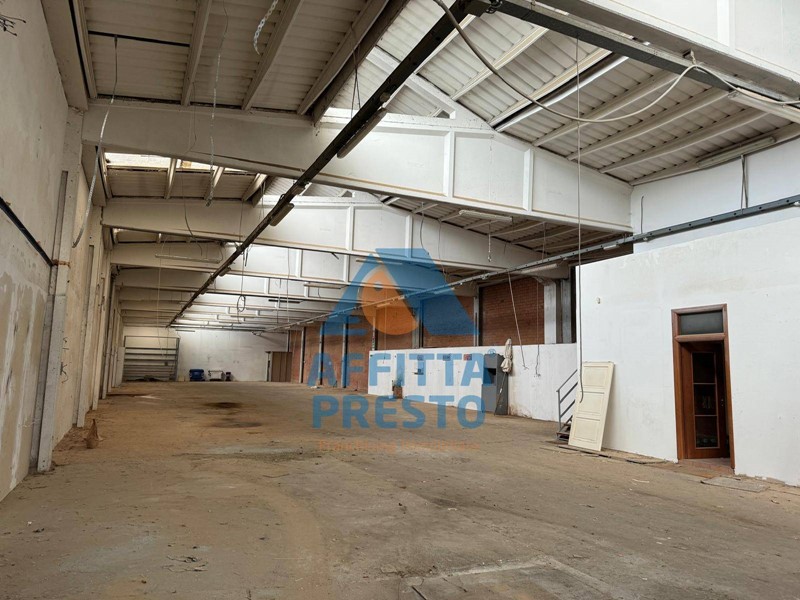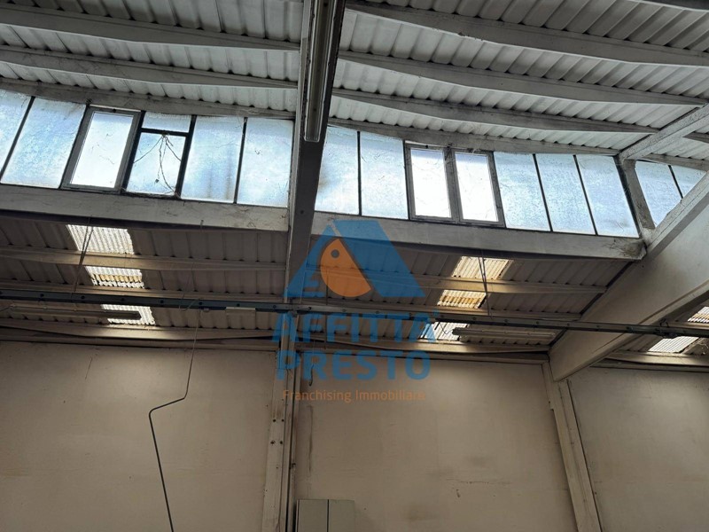 Altezza sottotrave di 5 metri a tetto di circa 8 metri, completo di bagni e parte uffici.