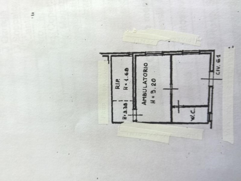 L'immobile è così composto: entrando troviamo una prima stanza che potrebbe essere sfruttata come sala d'attesa e dalla quale accediamo ai servizi igienici ; proseguendo troviamo una seconda stanza,dove si potrebbe allestire lo studio vero e proprio, con l'accesso ad un ripostiglio con un piccolo disimpegno nel sottoscala.